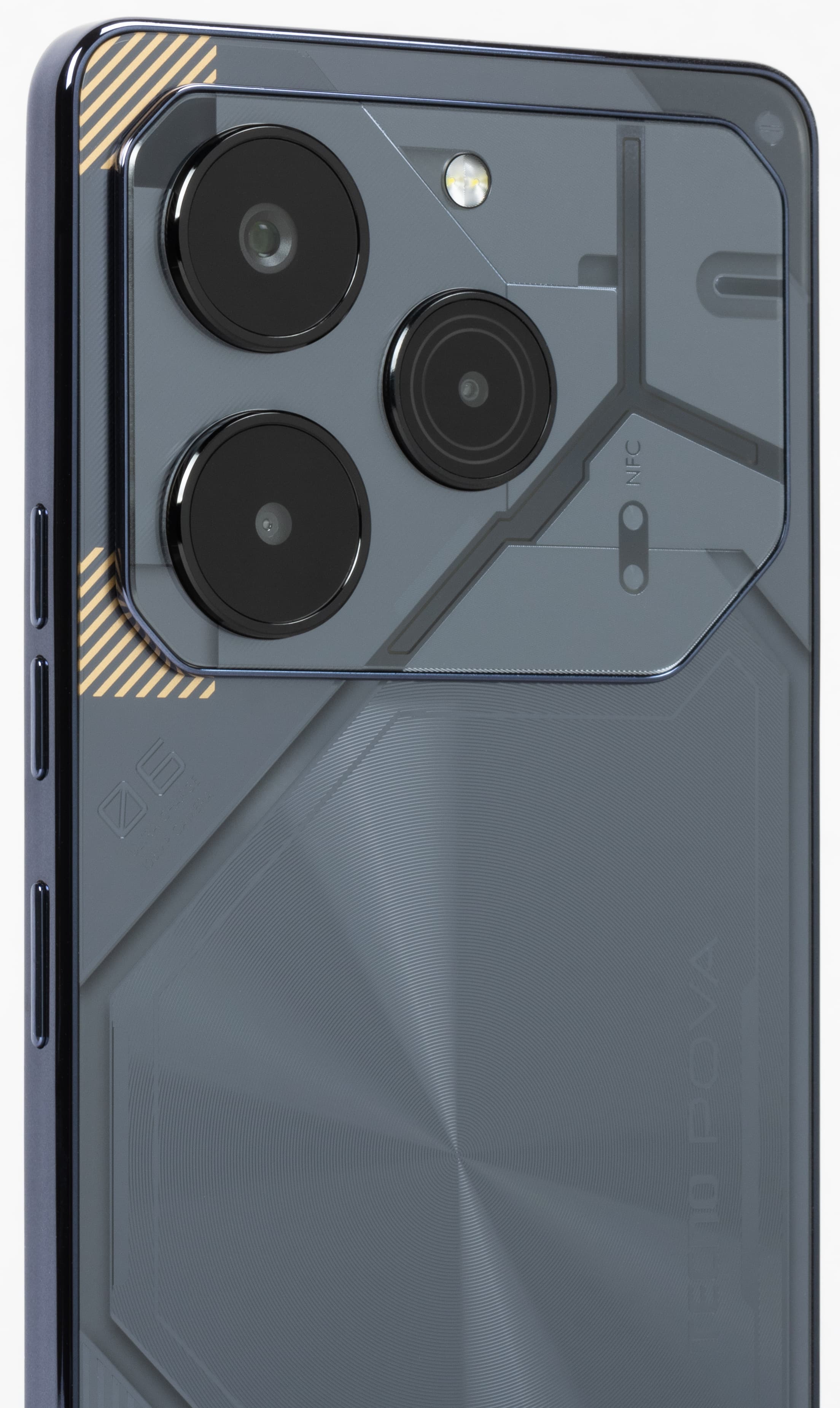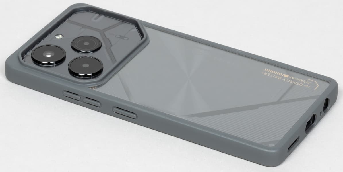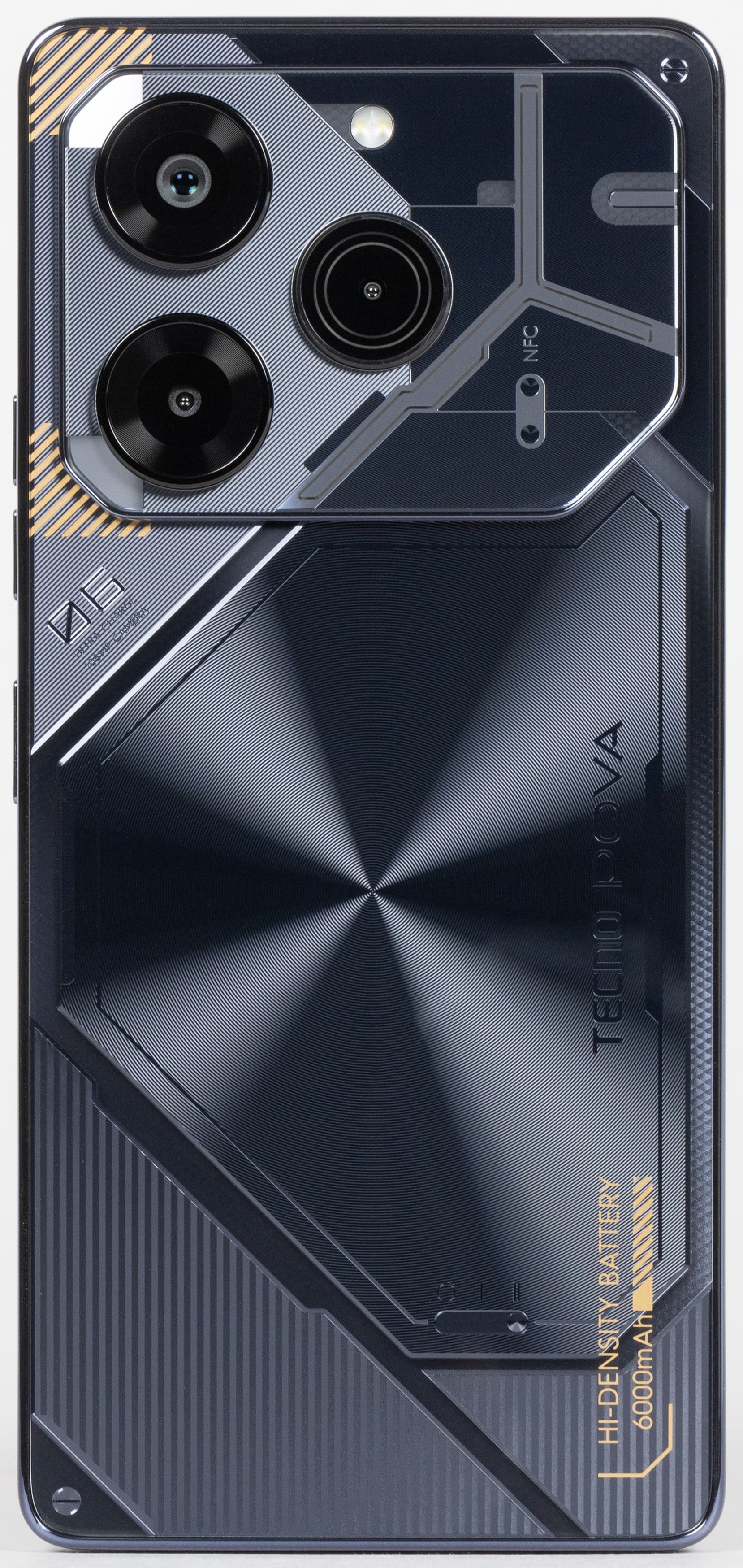 Tecno Pova 6 Pro 5G продолжает использовать в своем дизайне техногенный стиль футуристичных роботов Турбо Меха, поскольку серия задумывалась как игровая. Общий образ с прямыми рублеными чертами без обтекаемых форм и загнутого переднего стекла экрана дополнен затейливой текстурой на спинке.