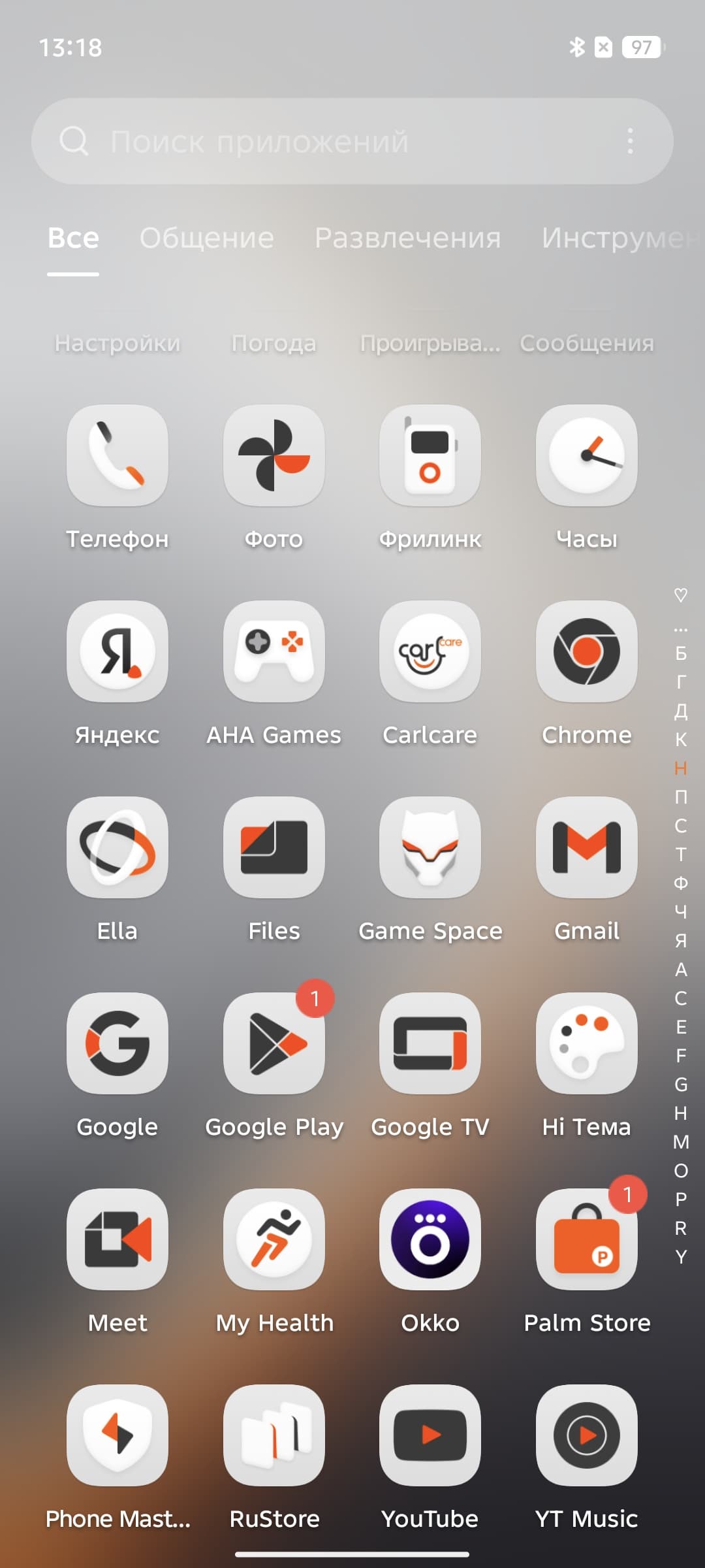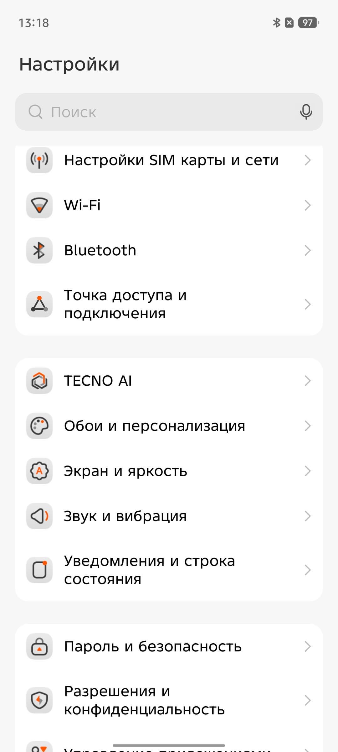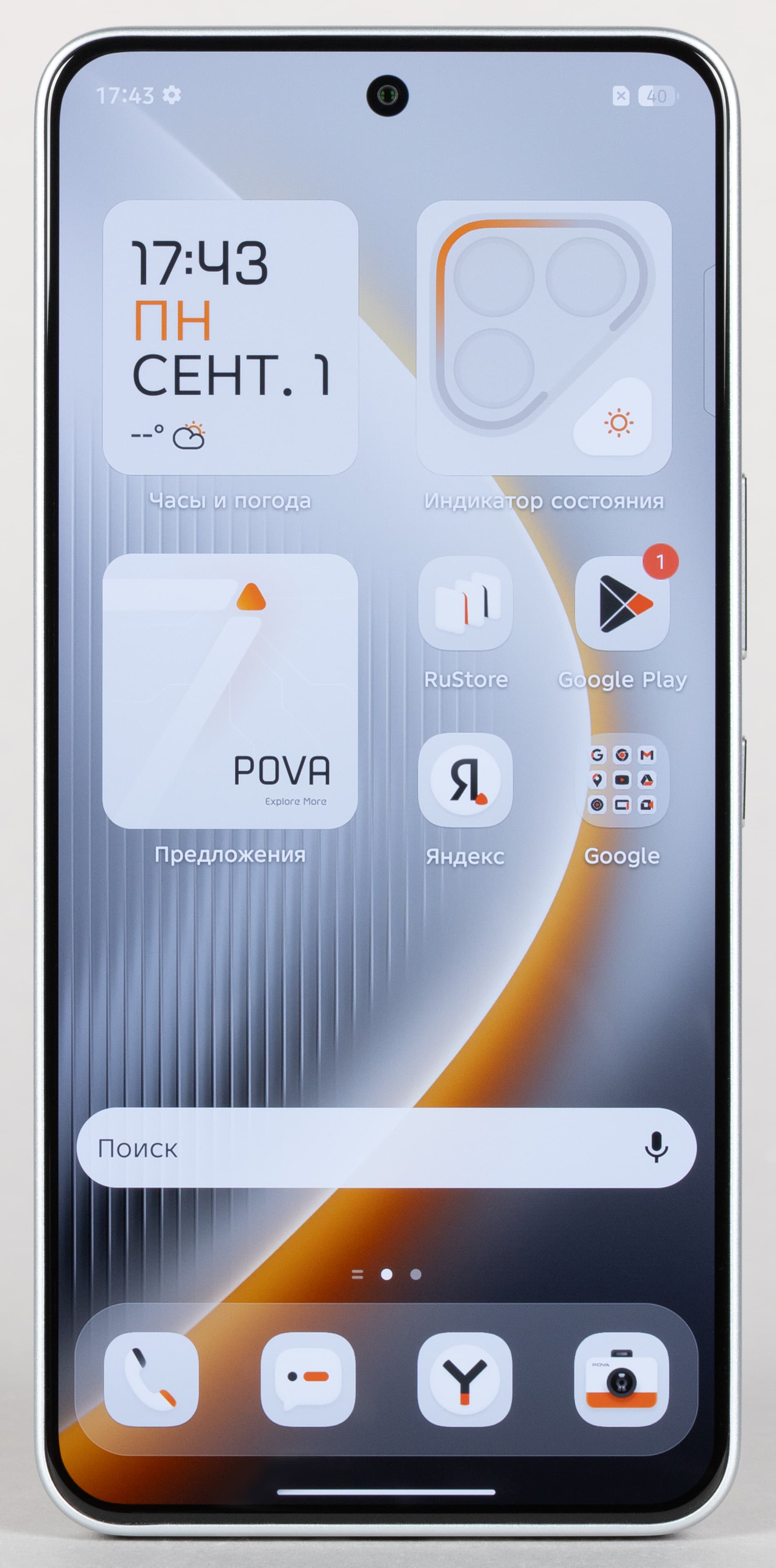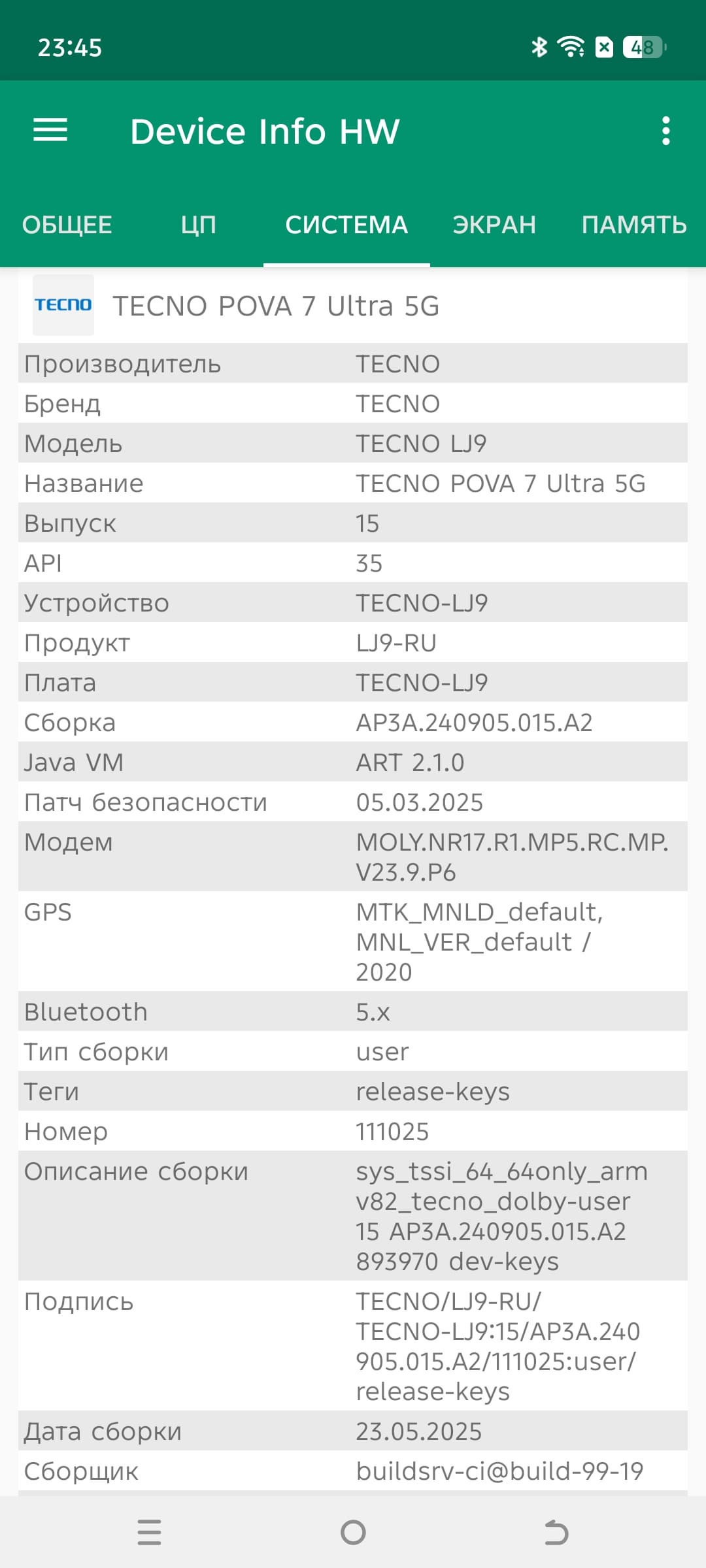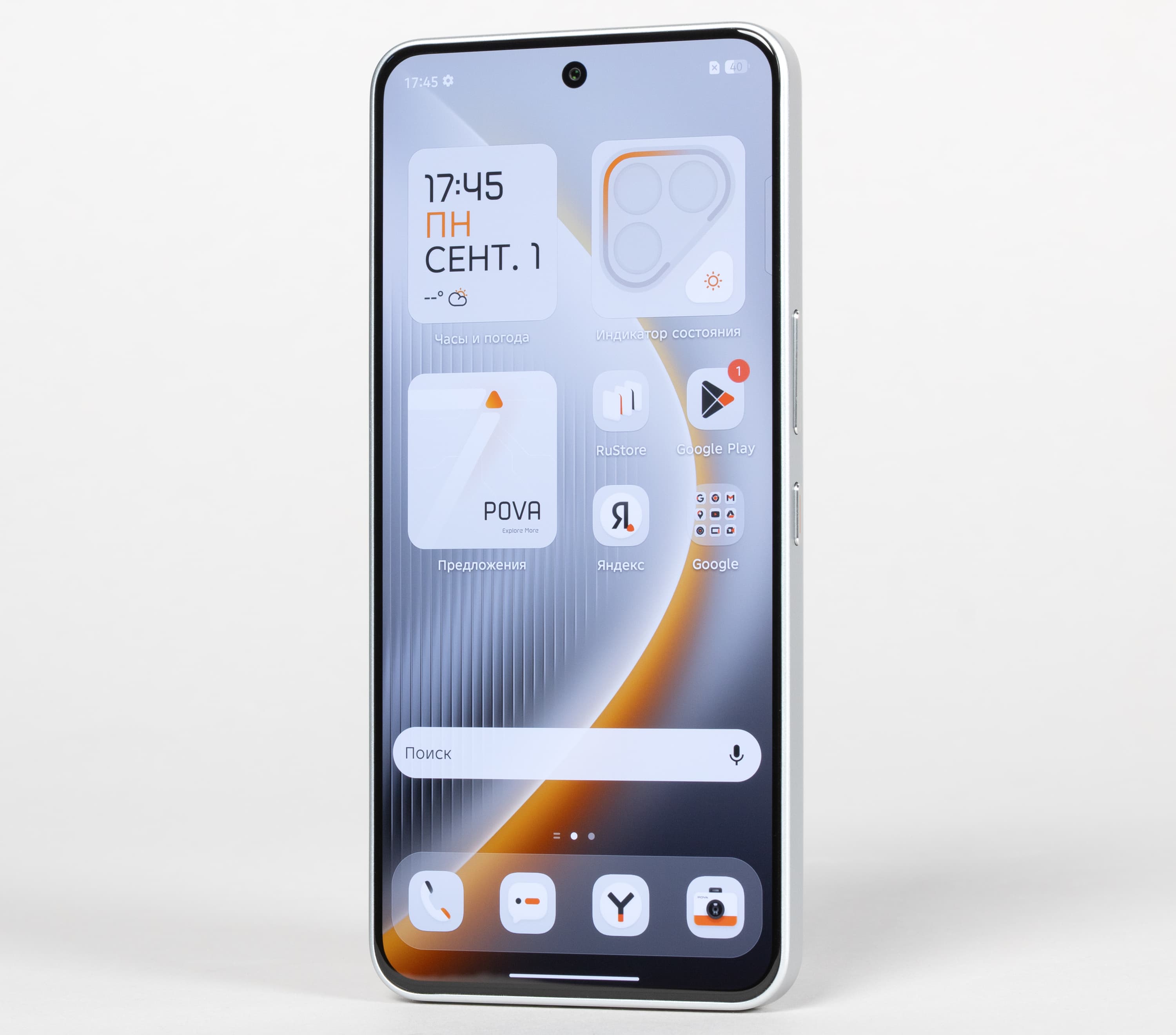 В качестве программной платформы смартфон основывается на ОС Android 15 с фирменной оболочкой HiOS 15. Это неплохо организованный и хорошо оптимизированный интерфейс с полной поддержкой сервисов Google и магазина Google Play Store. Верхняя шторка разделена на две части в зависимости от места оттягивания. Правда, в данной серии, зачем-то, художники нарисовали все иконки настолько единообразными, что сходу практически невозможно найти нужную. Например, перерисована даже иконка стороннего плеера МХ (всего создано более 300 иконок). Однако, это на практике оказалось не настолько удобно в использовании, как, очевидно, предполагали разработчики.