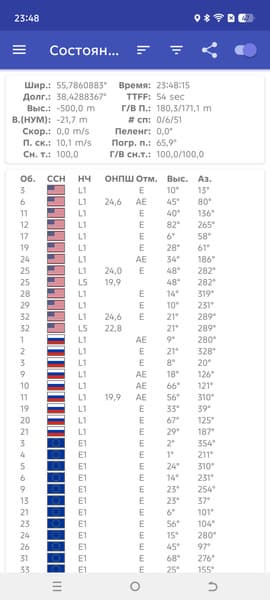 - GPS, Galileo, Глонасс, QZSS, BDS