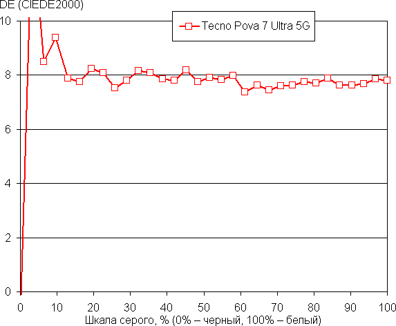 (Самые темные области шкалы серого в большинстве случаев можно не учитывать, так как там баланс цветов не имеет большого значения, да и погрешность измерений цветовых характеристик на низкой яркости большая.)