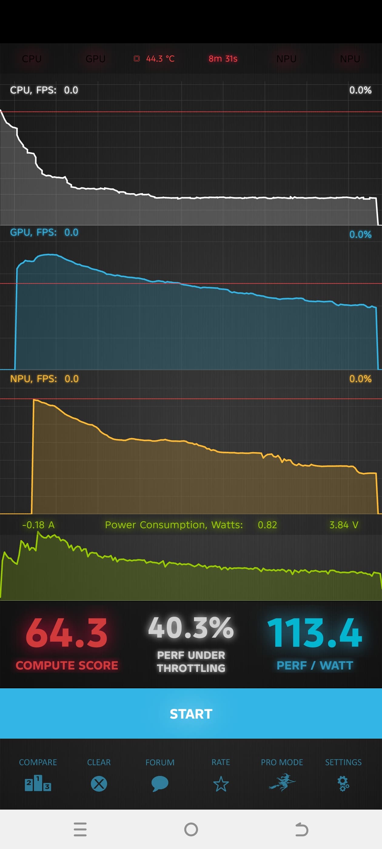 Тест на снижение производительности при нагреве мы проводим с помощью программы Burnout Benchmark, которая позволяет нагружать CPU, GPU и NPU.