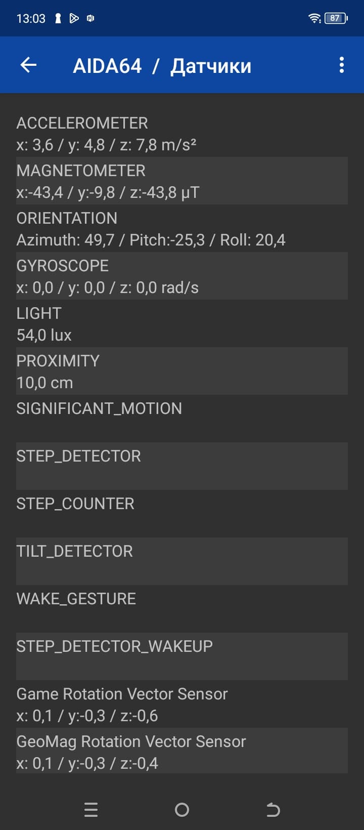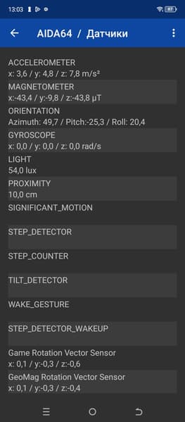 - Датчики приближения и освещения, магнитного поля, акселерометр, гироскоп