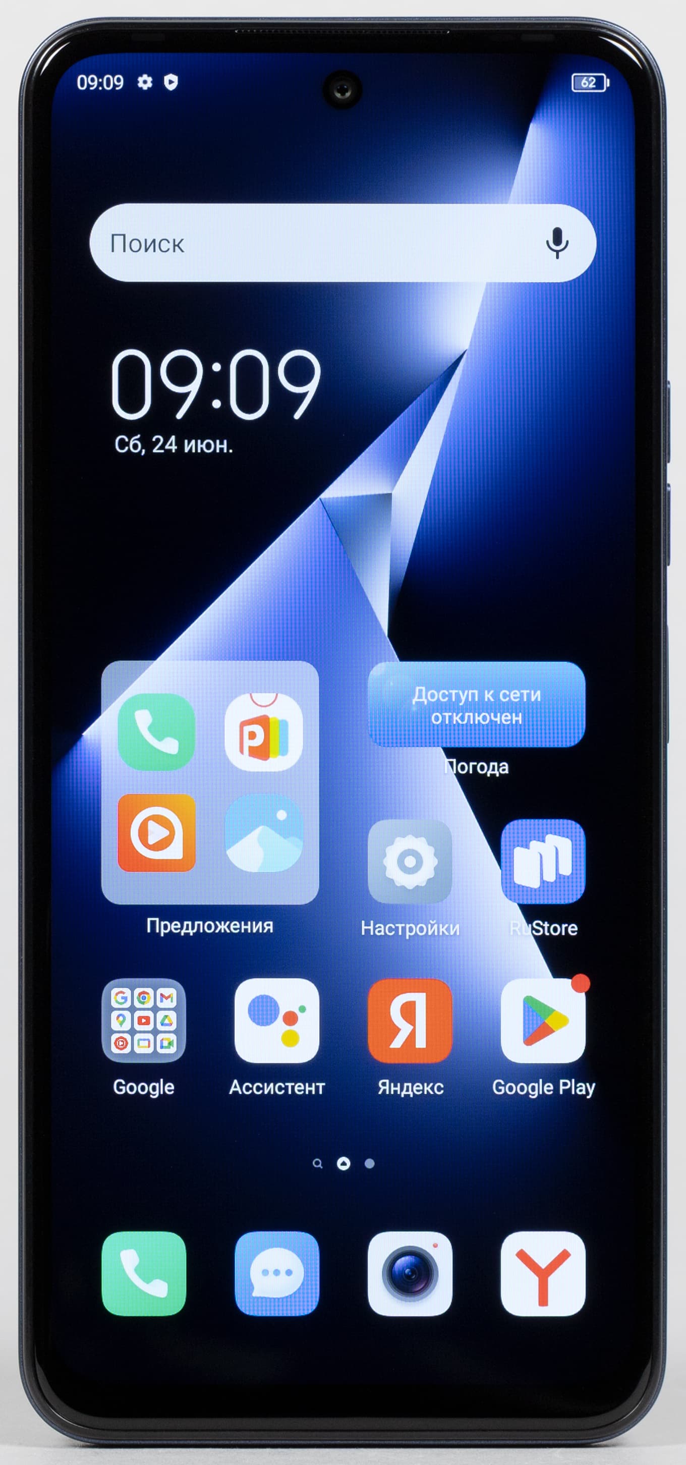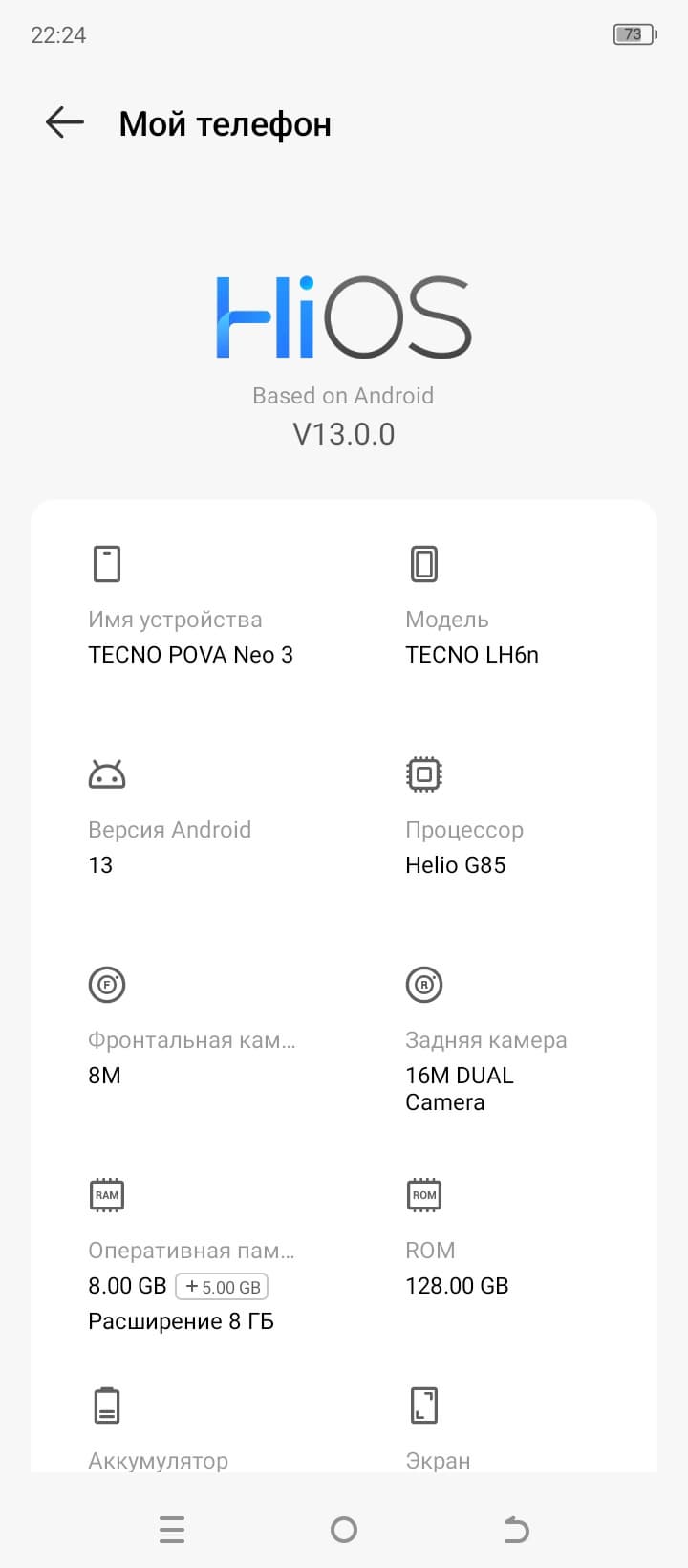 В качестве программной платформы смартфон Tecno Pova Neo 3 использует ОС Android 13 с собственной оболочкой HiOS 13. Интерфейс работает плавно, без притормаживаний. Верхняя шторка разделена на две части в зависимости от места оттягивания. Встроенная реклама уже не так мешается, как раньше. Предустановлено довольно большое число бесплатных приложений. Официальный магазин приложений и доступ к сервисам Google тоже на месте.