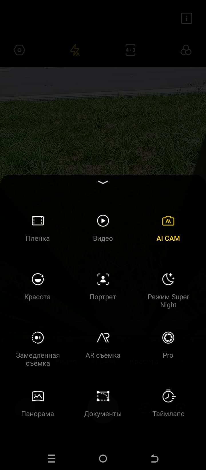 Смартфон Tecno Pova Neo 3 оснащен лишь одной снимающей камерой с сенсором 16 Мп, объективом f/1,8 и не очень быстрым автофокусом. Есть еще вспомогательный сенсор с совсем низким разрешением. Ни оптического зума, ни даже широкоугольного модуля нет. Интерфейс управления камерой удобный, но своеобразный: здесь дополнительные режимы необходимо вытягивать снизу вверх свайпом.