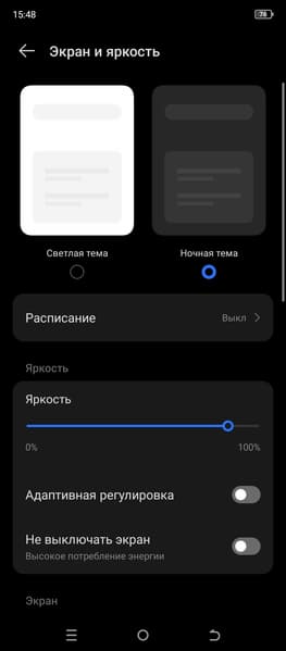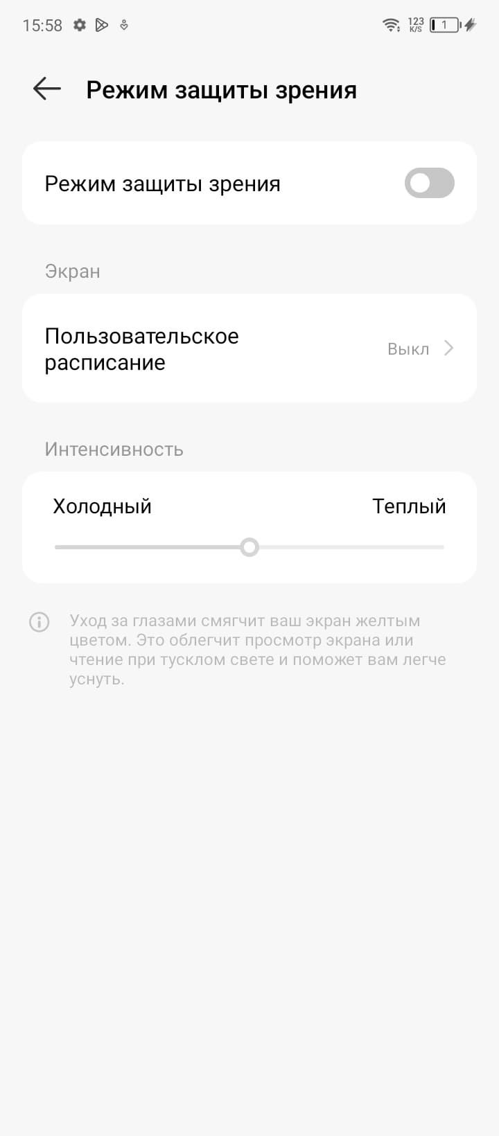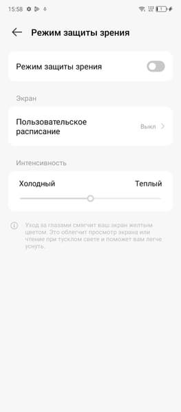 Присутствует настройка, позволяющая снизить интенсивность синей компоненты.