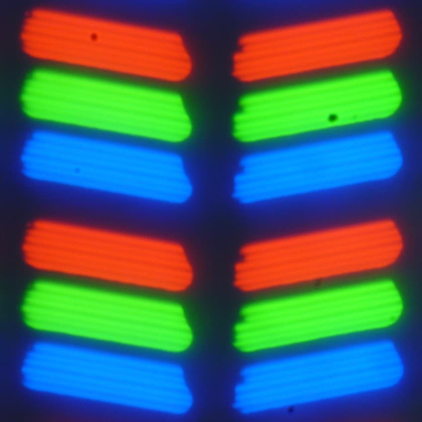В данном смартфоне используется матрица типа IPS. Микрофотографии демонстрируют типичную для IPS структуру субпикселей: