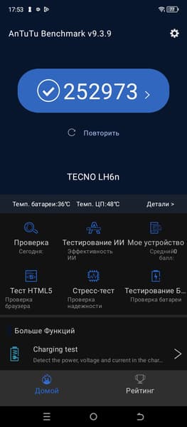 Тестирование в комплексных тестах AnTuTu и GeekBench: