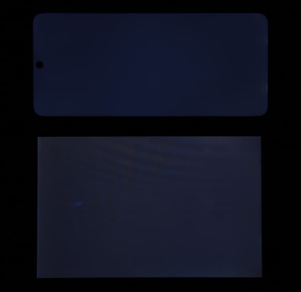 При перпендикулярном взгляде равномерность черного поля средняя (для наглядности яркость подсветки на смартфоне установлена на максимум):