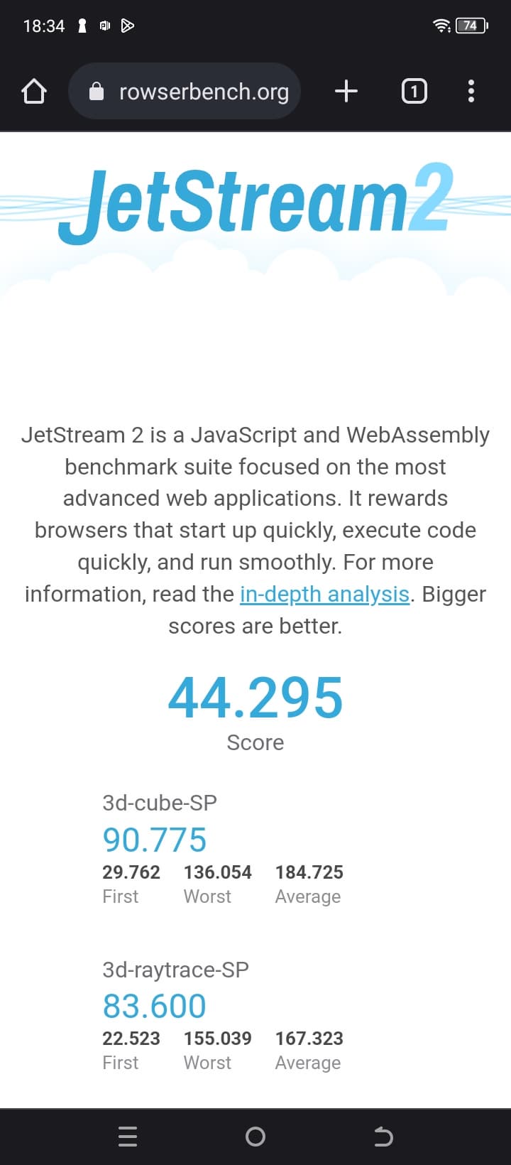 | JetStream (больше — лучше) | 44 | 59 | 60 | 87 | 73 |