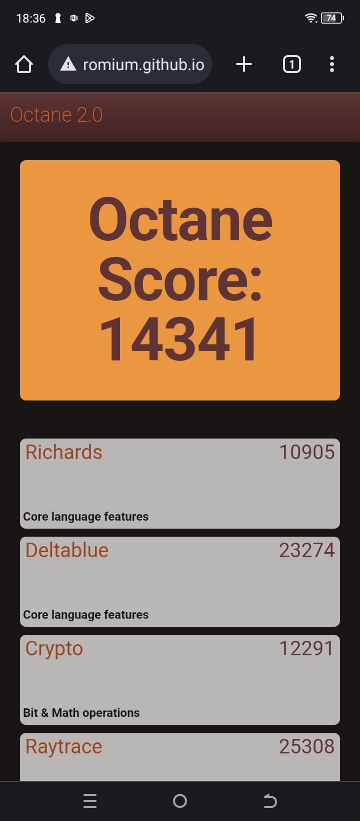 | Google Octane 2 (больше — лучше) | 14341 | 19925 | 27796 | 29329 | 27070 |