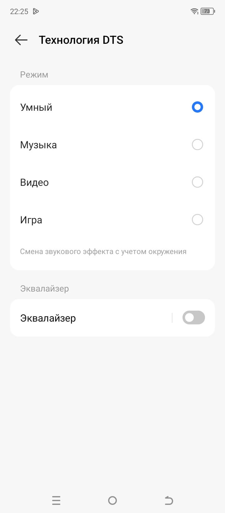 Основной динамик у смартфона один, он выдает не очень насыщенный звук, преимущественно на высоких частотах, без сочности, но зато очень громкий и объемный. В наушниках звук на среднем уровне. Есть возможность использовать настройки DTS с пресетами или настроить звук вручную с помощью пятиполосного эквалайзера. Для проводных наушников сохранен 3,5-миллиметровый аудиовыход.
