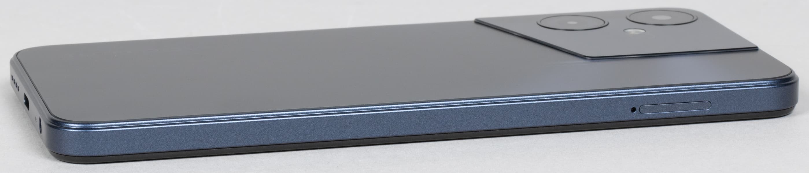Материалы изготовления самые простые: корпус пластиковый, с матовыми поверхностями без лака. Несмотря на это, поверхности довольно маркие. И на самой задней крышке, и на полупрозрачной вставке с камерами отпечатки остаются заметны. Боковая рамка (тоже из матовой пластмассы) в руке не скользит.