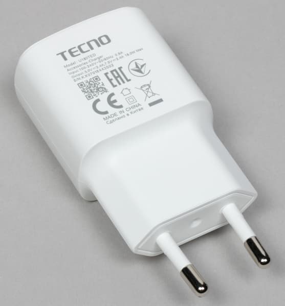 Комплект включает зарядное устройство с максимальной выходной мощностью 18 Вт, соединительный кабель и гибкий прозрачный защитный чехол.