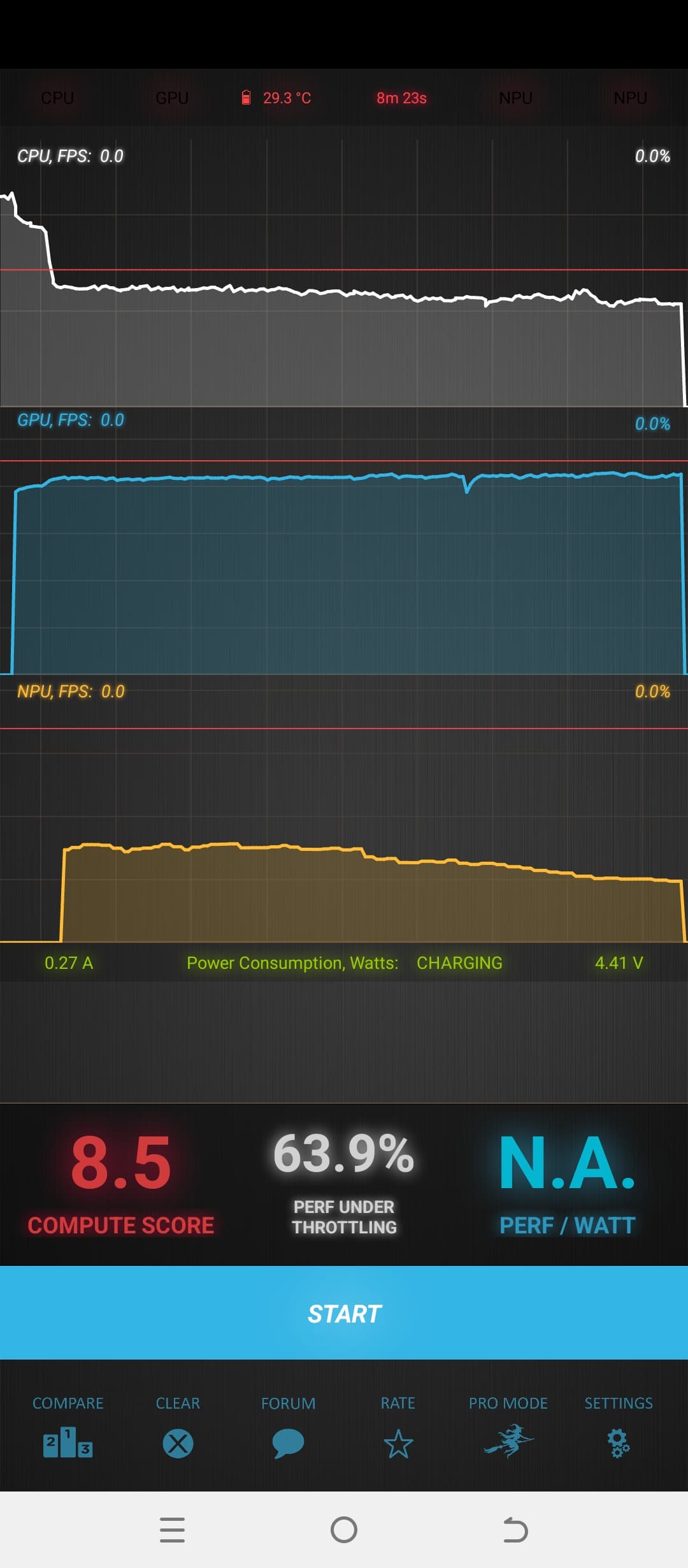 Тест на снижение производительности при нагреве мы проводим с помощью программы Burnout Benchmark, которая позволяет нагружать CPU, GPU и NPU: