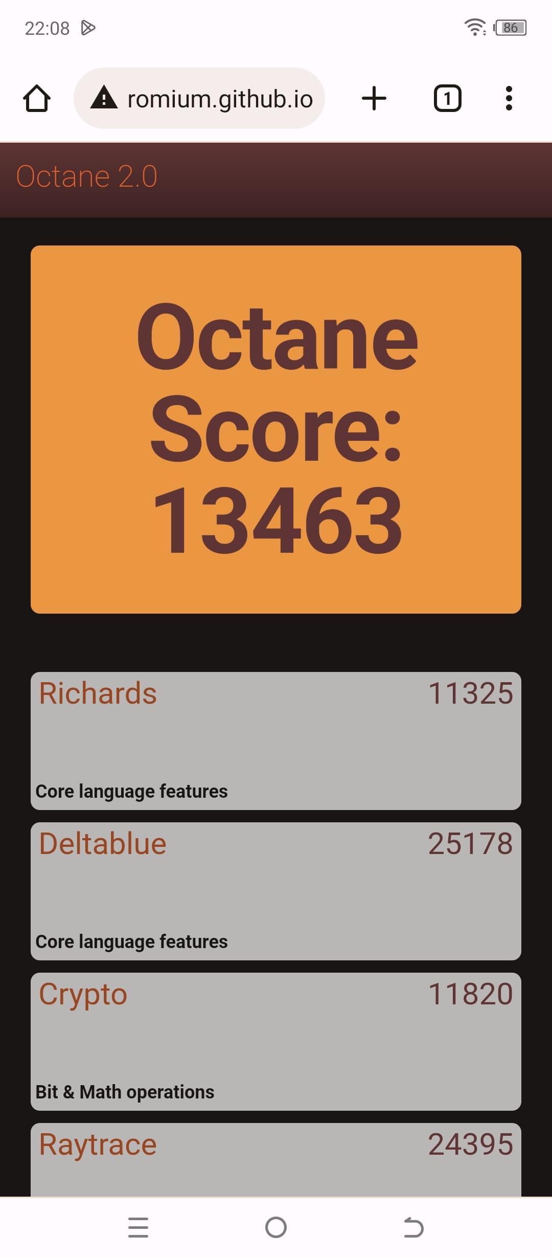 | Google Octane 2 (больше — лучше) | 13463 | 4521 | 5095 | 12607 | 4352 |