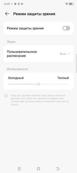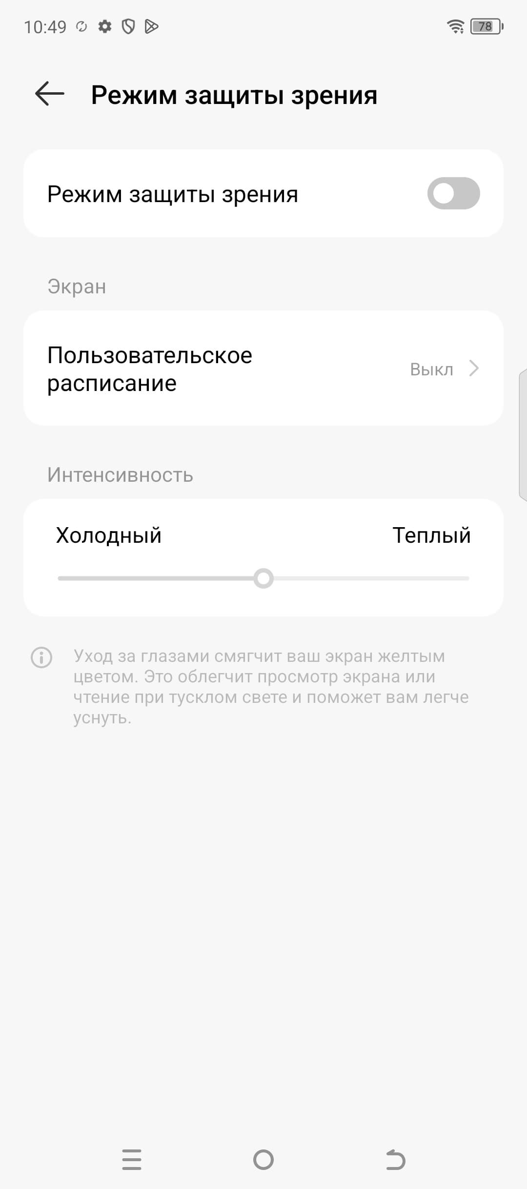 Разумеется, присутствует настройка (Режим защиты зрения), позволяющая снизить интенсивность синей компоненты. В принципе, яркий свет может приводить к нарушению суточного (циркадного) ритма (см. статью про iPad Pro с дисплеем 9,7 дюйма), но все решается снижением яркости до низкого, но еще комфортного уровня, а искажать цветовой баланс, уменьшая вклад синего, нет абсолютно никакого смысла.