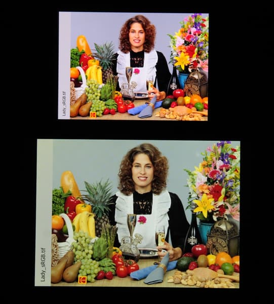 Цветовой охват даже в случае профиля Оригинальный цвет значительно шире sRGB и очень близок к пространству DCI-P3: