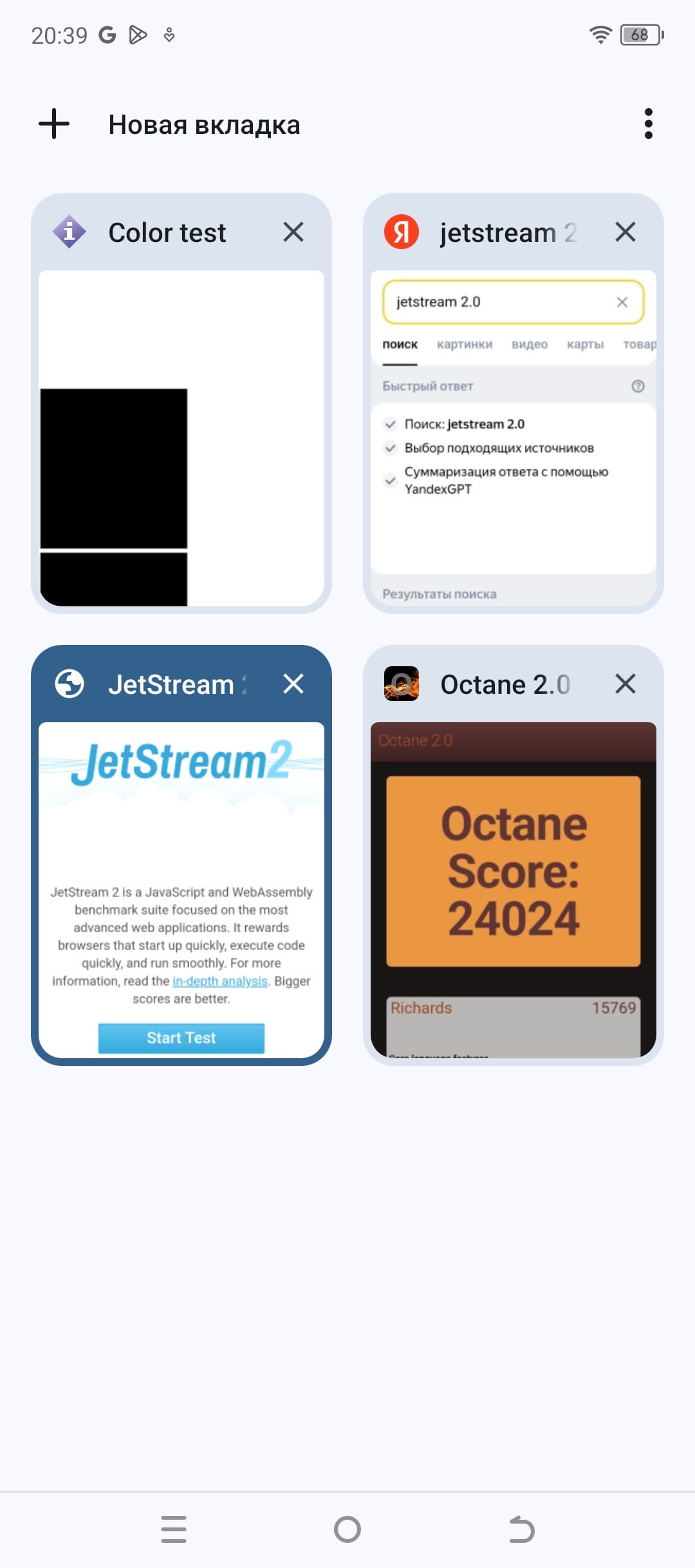 | Google Octane 2 (больше — лучше) | 24024 | 24923 | 29390 | 30529 | 39276 |