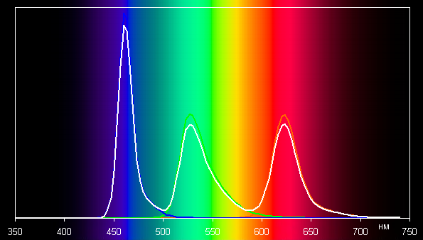 В этом случае спектры компонент (то есть спектры чистых красного, зеленого и синего цветов) очень хорошо разделены: