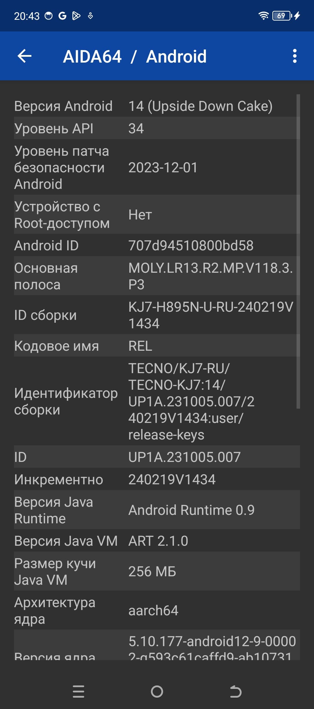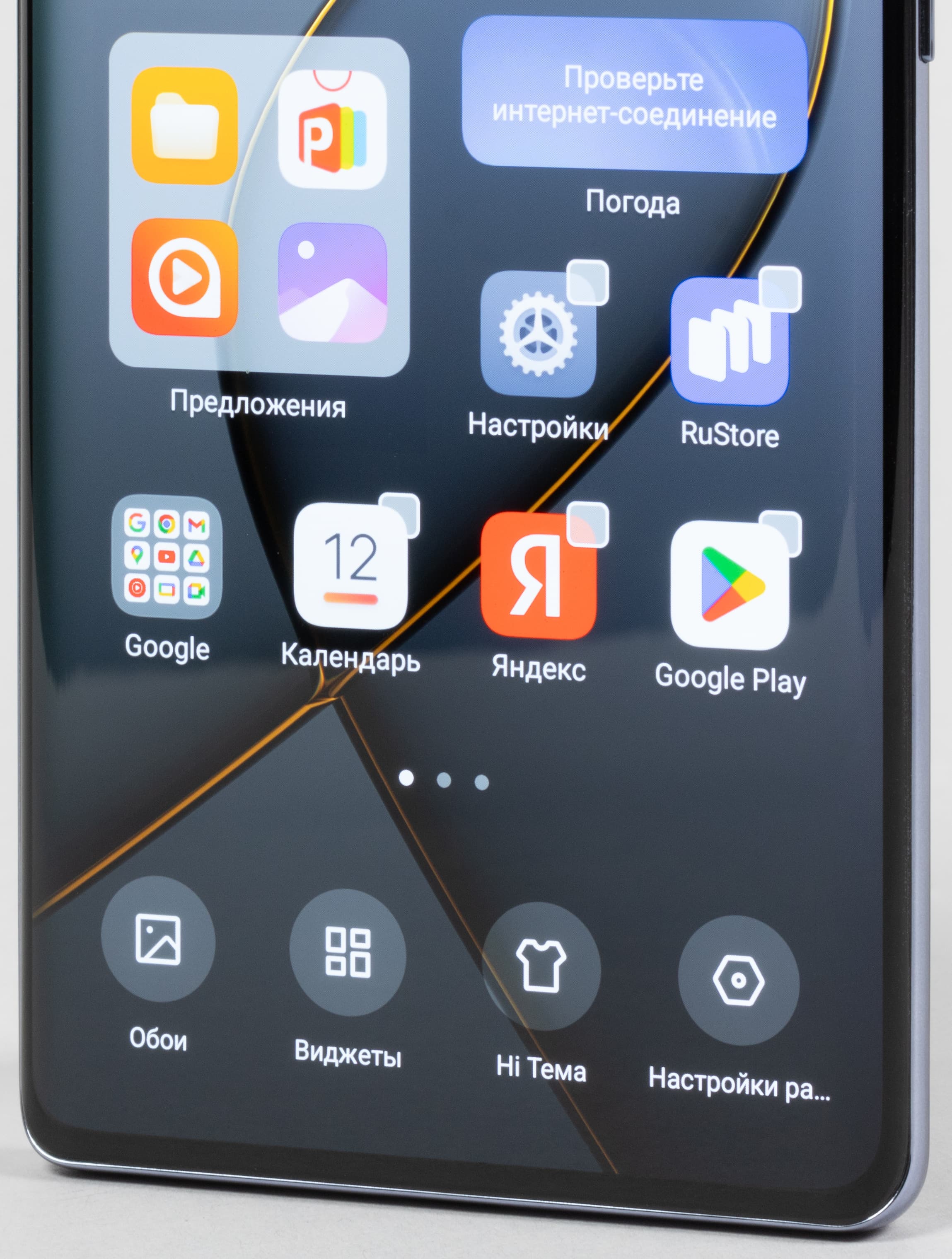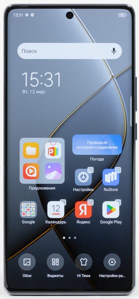 В качестве программной платформы Tecno Spark 20 Pro+ использует ОС Android 14 с собственной оболочкой HiOS 13.6. Оболочка явно начинает выигрывать у Realme и Redmi своей чистотой, лаконичностью, отсутствием рекламы и минимальным количеством предустановленных навязчивых приложений. За это одно уже хочется поблагодарить представителей Tecno. Оттягиваемая шторка разделена на две части. Официальный магазин приложений Google Play и доступ к сервисам Google — на месте.