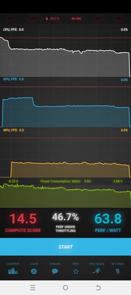 Тест на снижение производительности при нагреве мы проводим с помощью программы Burnout Benchmark, которая позволяет нагружать CPU, GPU и NPU: