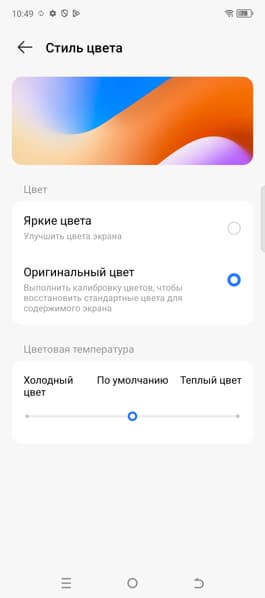 Фотография выше получена после выбора профиля Оригинальный цвет в настройках экрана. Всего профилей два.