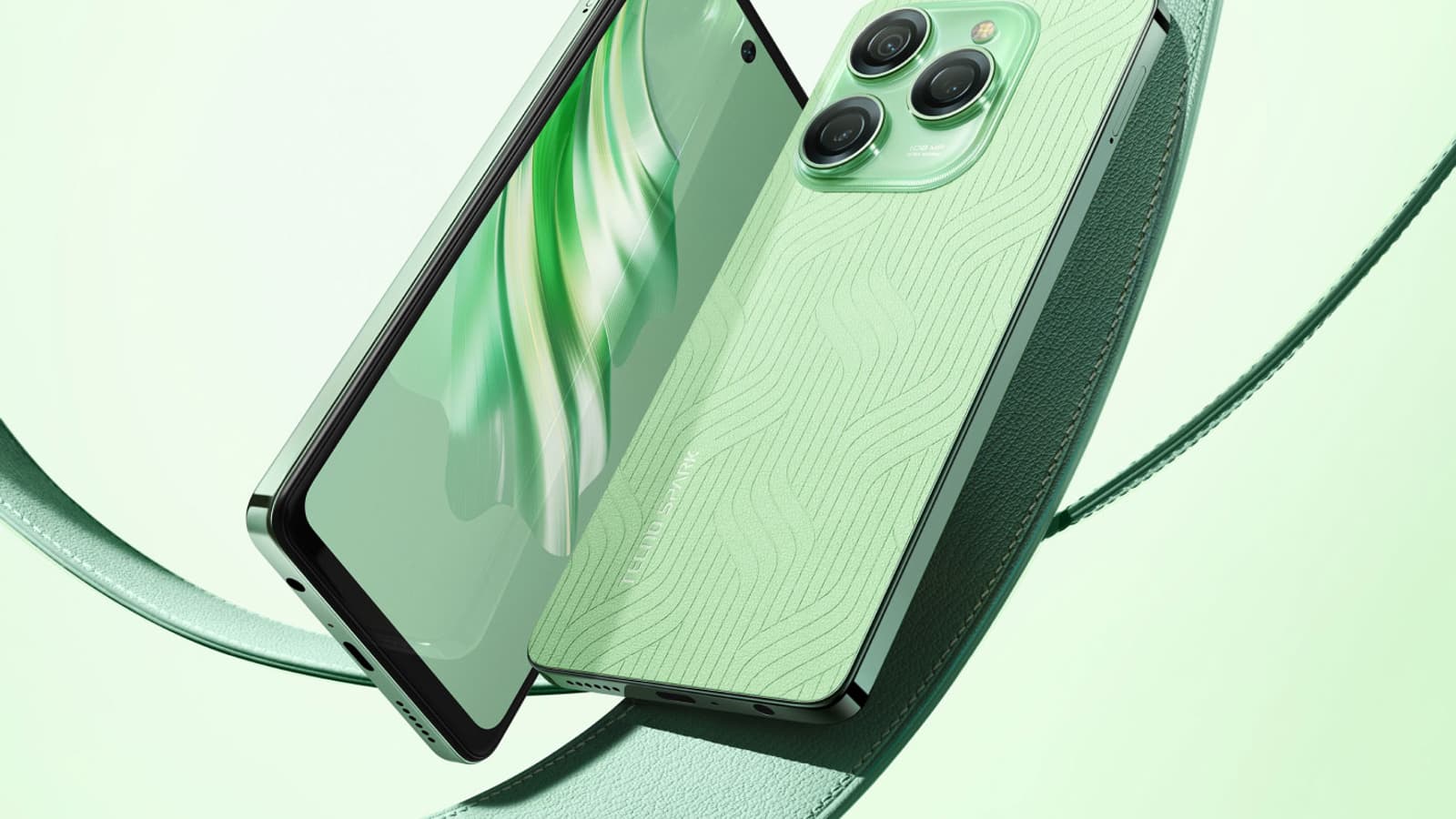 Смартфон Tecno Spark 20 Pro не получил полноценной защиты от влаги и пыли, но есть легкая защита от брызг по стандарту IP53. Модель представлена в нескольких цветах — черном, белом, золотистом, и в зависимости от цвета слегка различается текстура поверхности задней крышки. Зеленый вариант так и вовсе выполнен под экокожу с тисненым геометрическим рисунком.