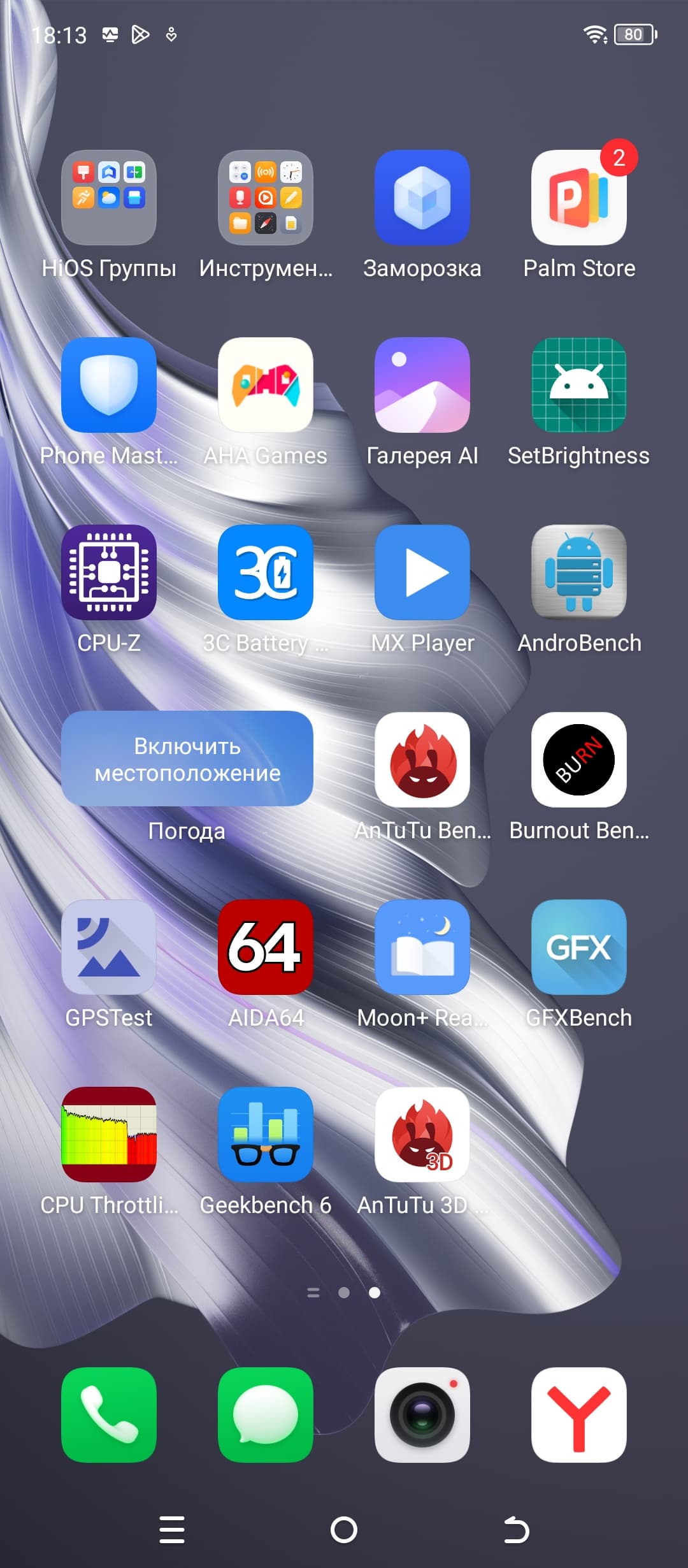 В качестве программной платформы Tecno Spark 20 Pro использует ОС Android 13 с собственной оболочкой HiOS 13.5. Это не очень легкая и быстрая, но стабильная оболочка с аккуратным русским переводом, удаляемыми дополнительными программами и отсутствием рекламы. Из особенностей — Dynamic Port, до боли знакомый уже визуальный динамический эффект, создающий виртуальный «островок» вокруг фронтальной камеры с отображением информации о статусе заряда и т. п.