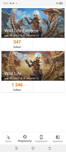 | 3DMark Wild Life Vulkan (больше — лучше) | 1246 | 4505 | 4186 | 2450 | 1327 |