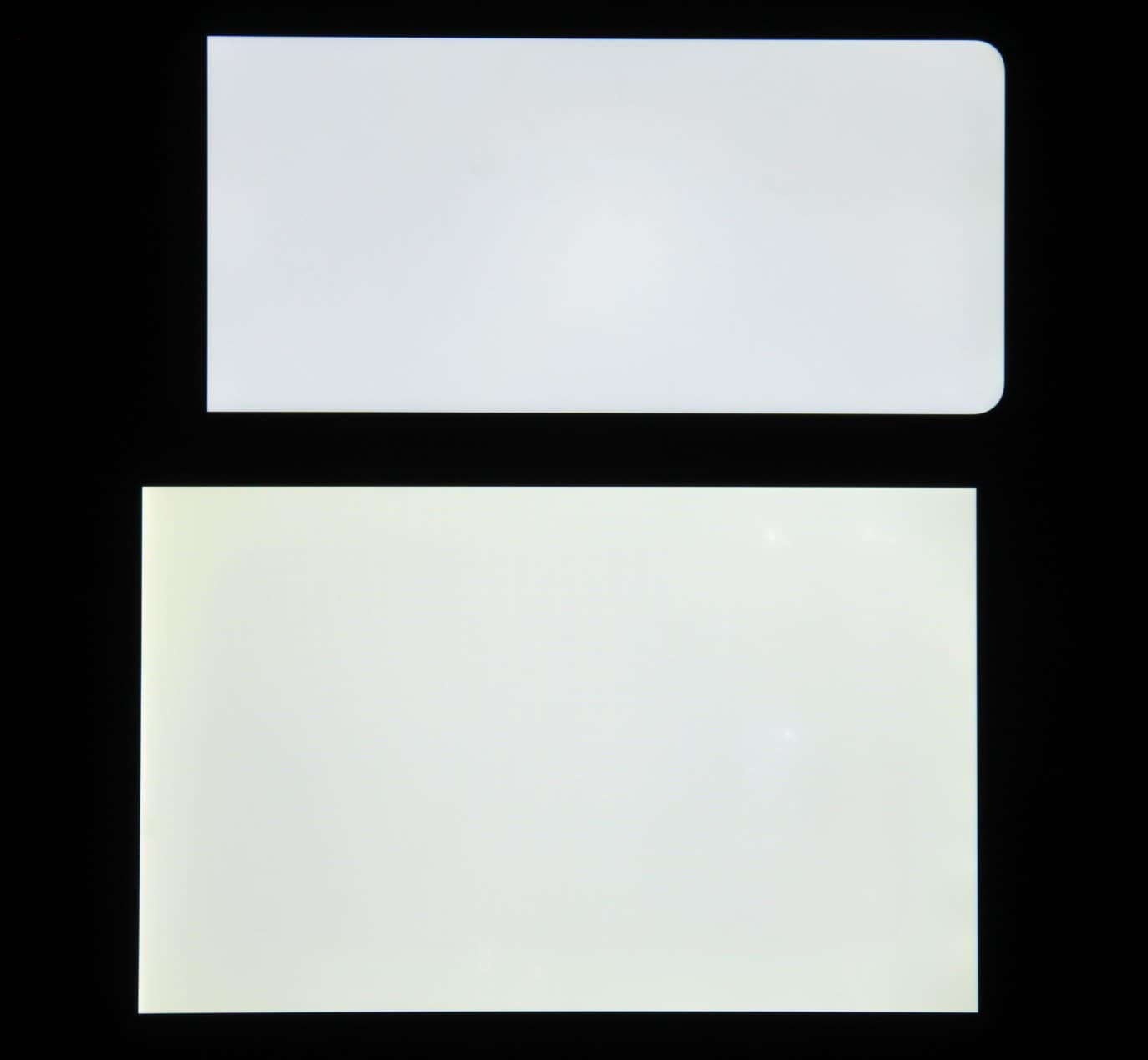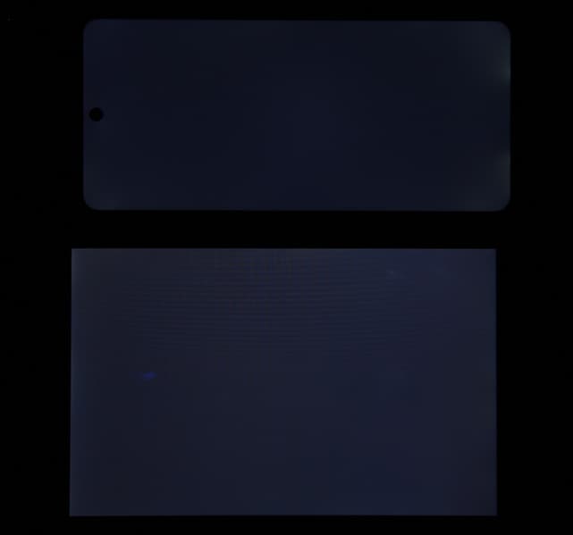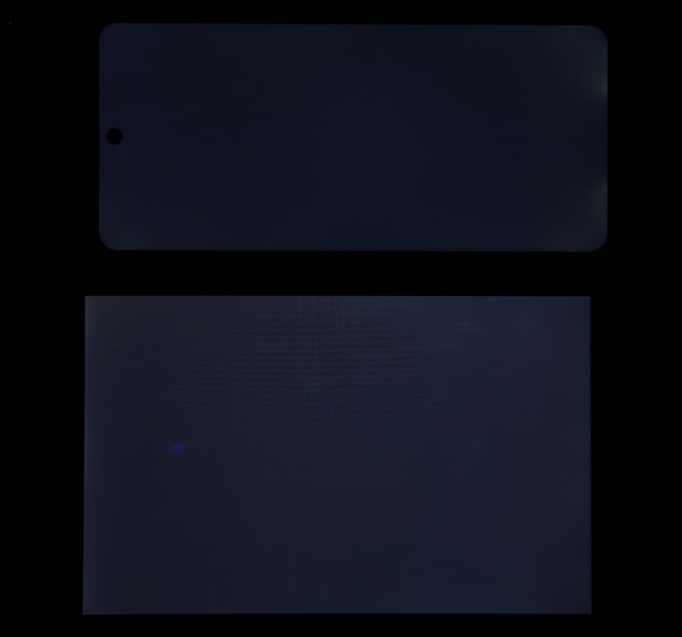 При перпендикулярном взгляде равномерность черного поля средняя (для наглядности яркость подсветки на смартфоне установлена на максимум):