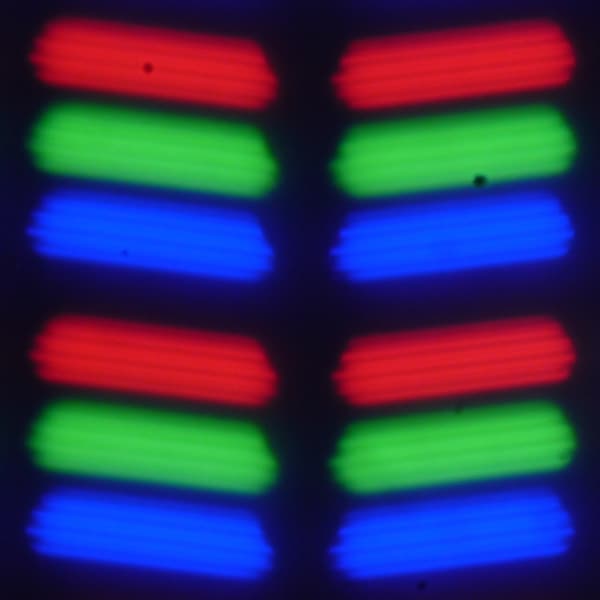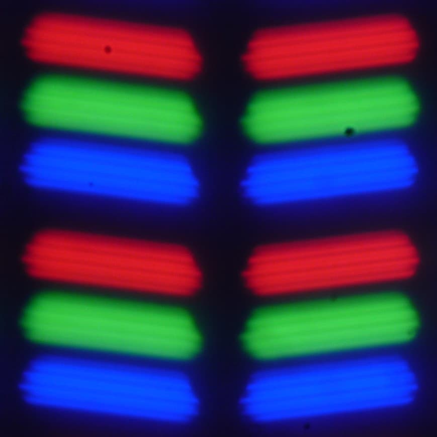 В данном смартфоне используется матрица типа IPS. Микрофотографии демонстрируют типичную для IPS структуру субпикселей: