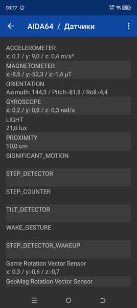 Голос собеседника в динамике громкий и вполне разборчивый. Вибромотор самый обычный, средний по мощности. Все необходимые встроенные датчики, вплоть до гироскопа, на месте.