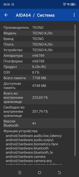 В качестве программной платформы Tecno Spark 20 использует ОС Android 13 с оболочкой HiOS 13.5. Это вполне стабильная, но далеко не самая быстрая оболочка в том, что касается анимации переходов, перелистываний и открытия приложений. В остальном это довольно типичный интерфейс с добротным переводом на русский язык, удаляемыми предустановленными приложениями и отсутствием рекламы. Постепенно интерфейс был приведен в соответствие со стандартами и нормами для европейского рынка, осталось оптимизировать быстродействие оболочки.