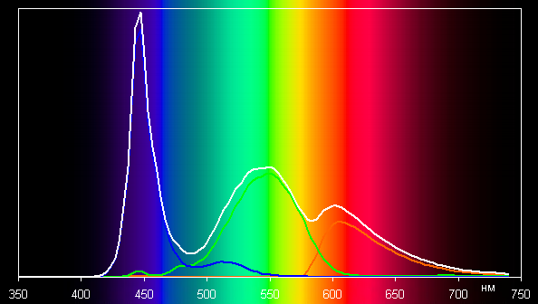 Спектры показывают, что светофильтры матрицы в умеренной степени подмешивают компоненты друг к другу: