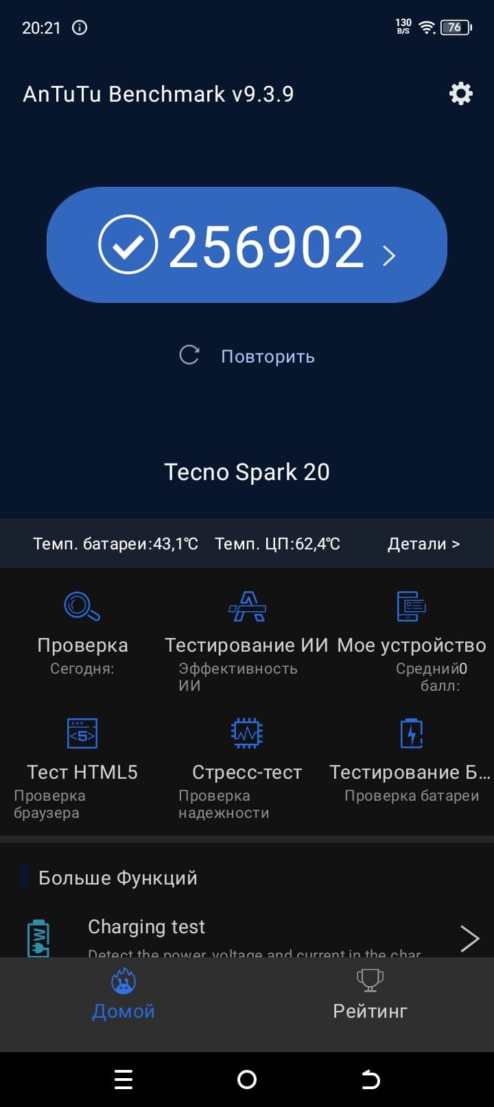 Tecno Spark 20 можно сейчас приобрести в России по цене в районе 10-12 тысяч рублей в зависимости от объема памяти. За такие деньги приятный внешне смартфон с большим объемом памяти, стереозвуком, неплохим IPS-экраном и неожиданно не слишком плохой камерой вполне годен к приобретению. Звезд с неба он не хватает, все характеристики и возможности среднего или чуть ниже среднего уровня, процессор вообще крайне бюджетный, но за такую сумму ничего лучше и не найти.