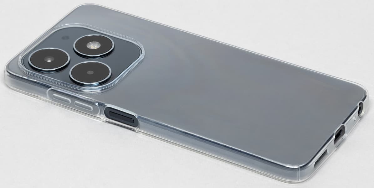 Комплектный силиконовый чехол — прозрачный и гибкий, с высокими «наростами» вокруг особо уязвимых мест смартфона (камер, разъемов).