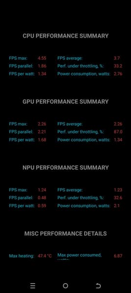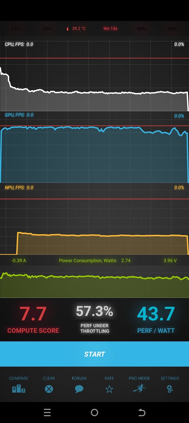 Тест на снижение производительности при нагреве мы проводим с помощью программы Burnout Benchmark, которая позволяет нагружать CPU, GPU и NPU: