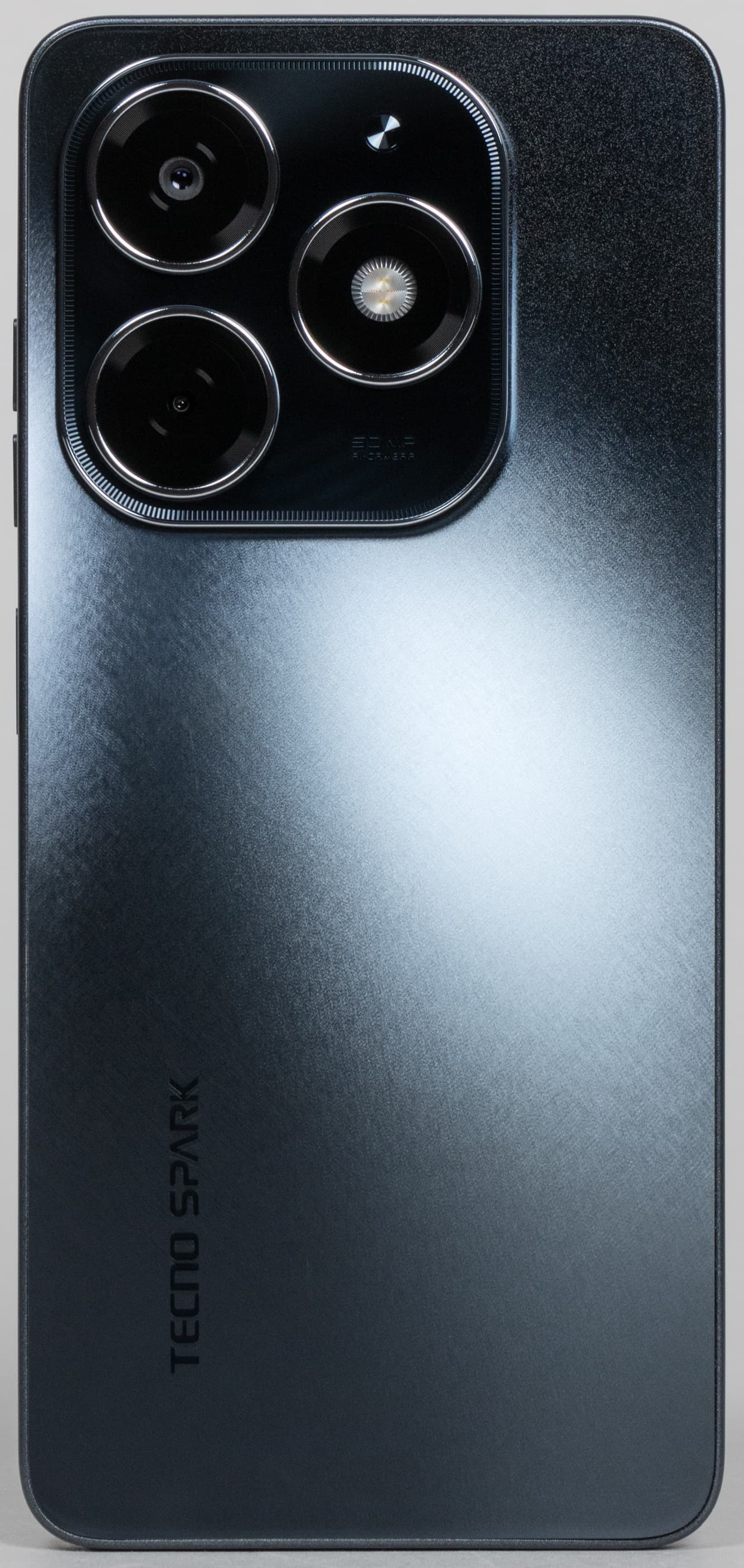 Сзади у Tecno Spark 20 три красивых кружка одинакового размера, но снимающая камера лишь одна — c сенсором 50 Мп и объективом f/1,6. Есть фазовый автофокус PDAF, стабилизатора нет.