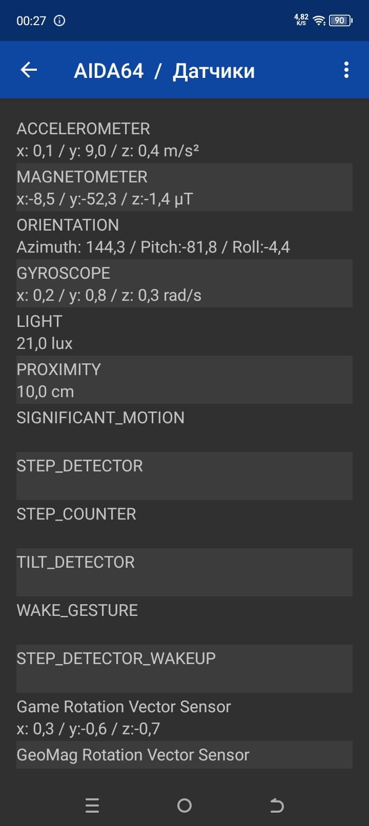 - Датчики приближения и освещения, магнитного поля, акселерометр, гироскоп