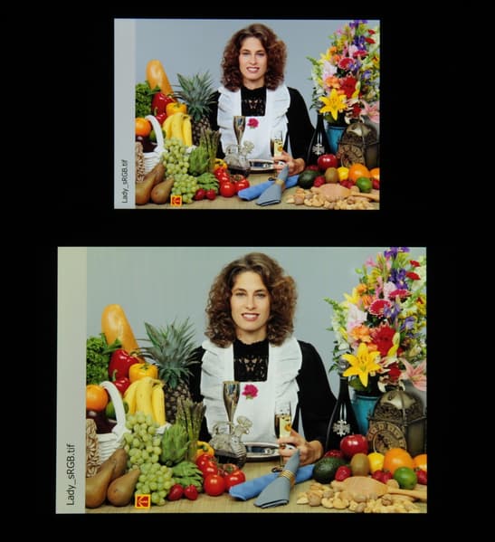 Однако даже при максимальной коррекции цветовая температура все равно чуть выше стандартной (6600 К), а отклонение от спектра абсолютно черного тела (ΔE) становится выше 10 (а именно 11). Также есть настройка, позволяющая снизить интенсивность синей компоненты.