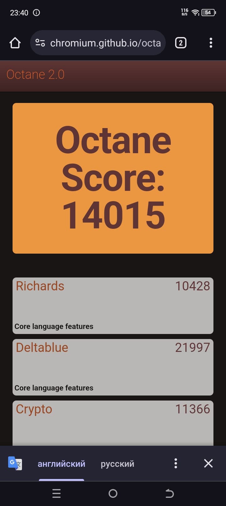 | Google Octane 2 (больше — лучше) | 14015 | 27796 | 29329 | 27070 | 19194 |