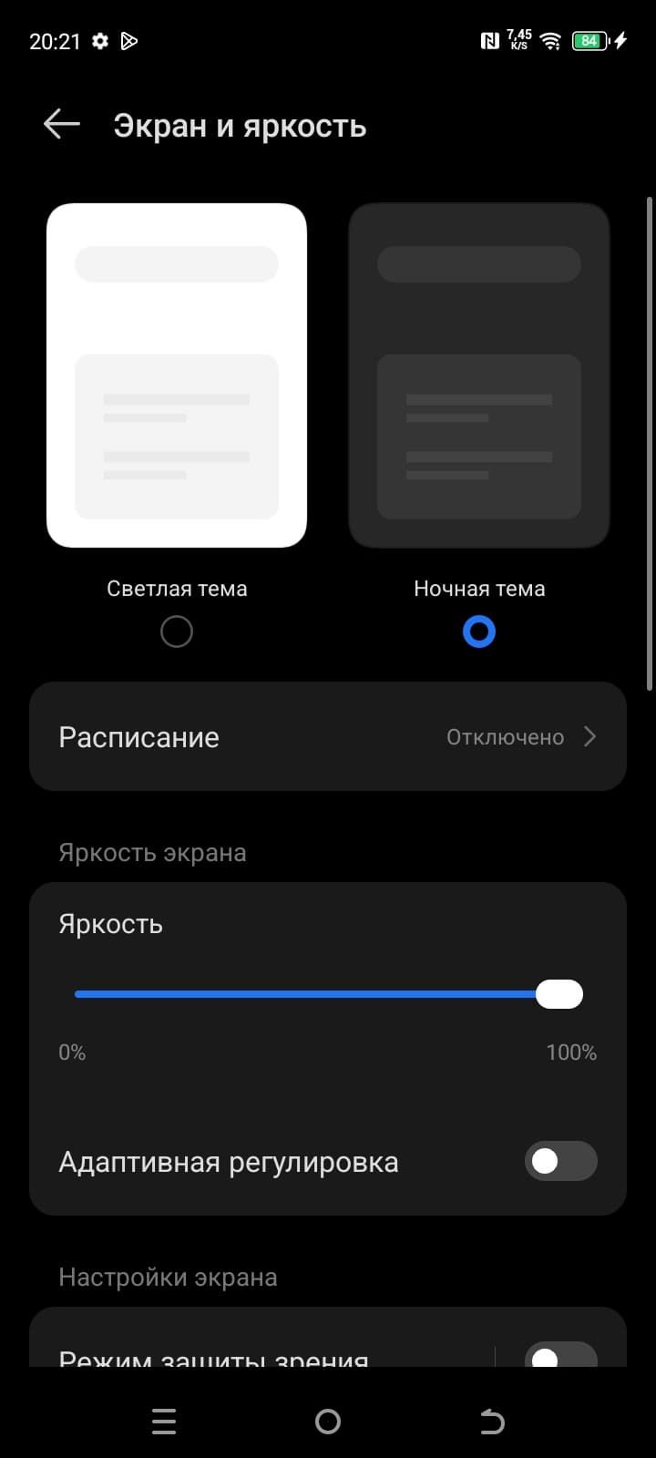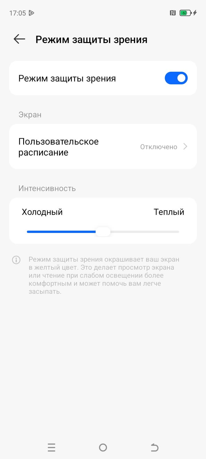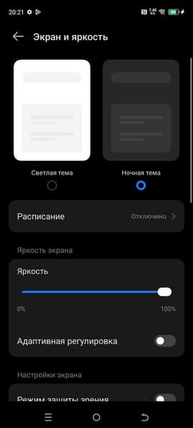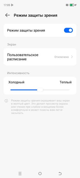 Разумеется, присутствует настройка (Режим защиты зрения), позволяющая снизить интенсивность синей компоненты. В принципе, яркий свет может приводить к нарушению суточного (циркадного) ритма (см. статью про iPad Pro с дисплеем 9,7 дюйма), но все решается снижением яркости до низкого, но еще комфортного уровня, а искажать цветовой баланс, уменьшая вклад синего, нет абсолютно никакого смысла.