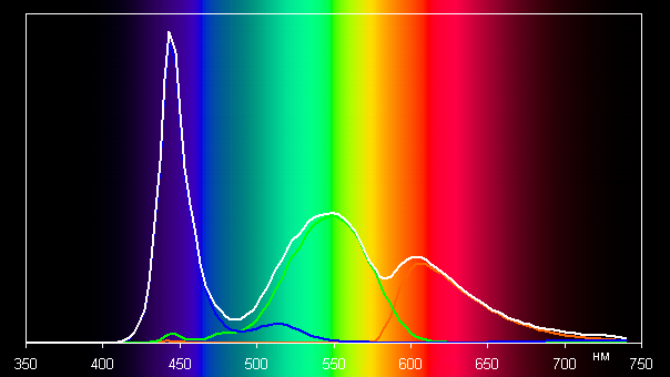 Спектры показывают, что светофильтры матрицы в умеренной степени подмешивают компоненты друг к другу: