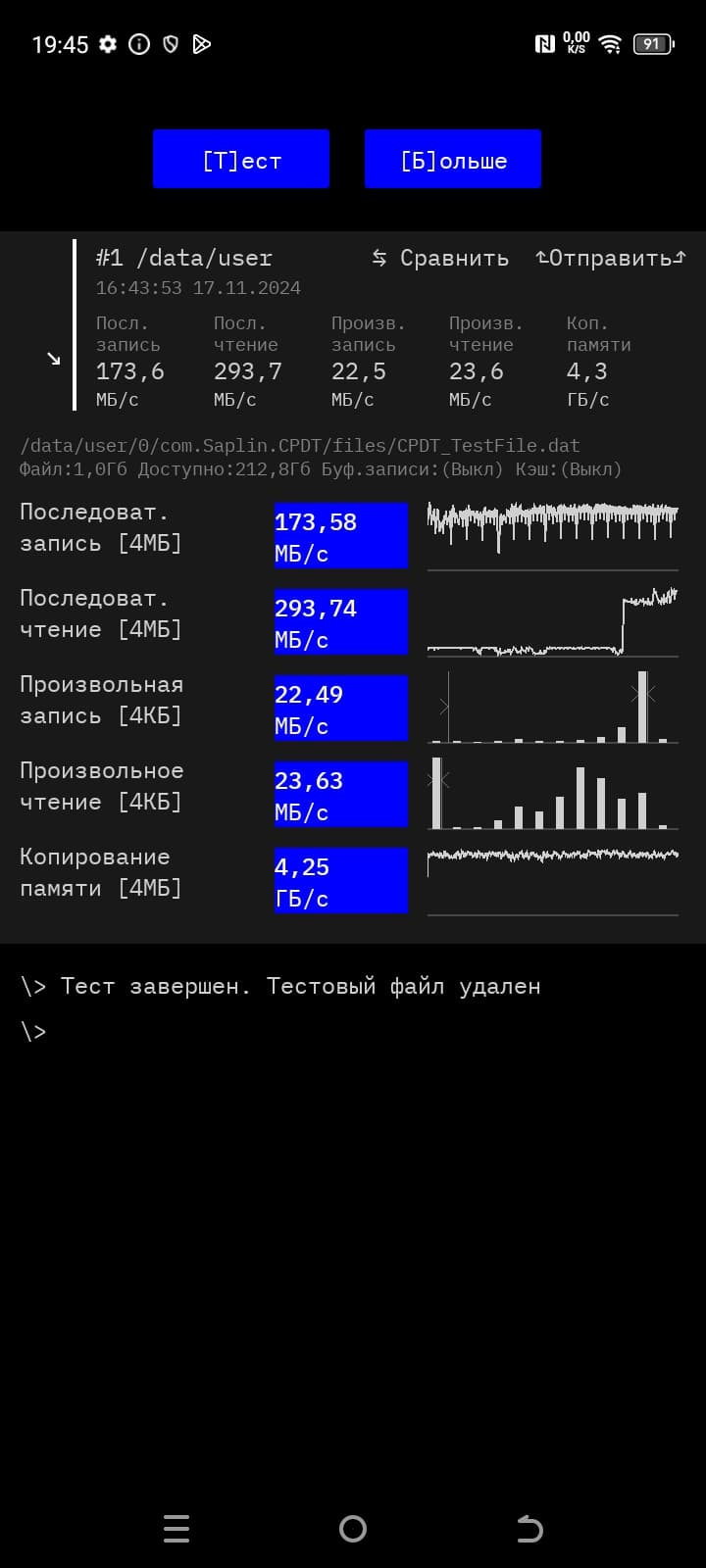 Результаты тестирования скорости памяти: