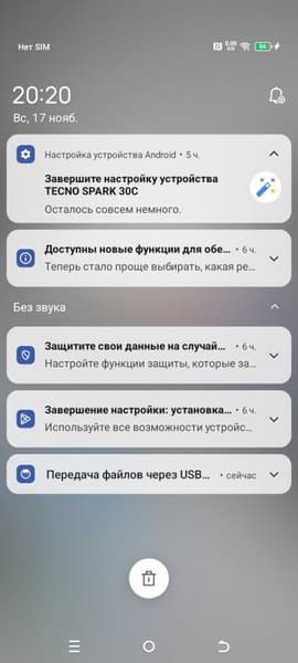 В качестве программной платформы в Tecno Spark 30C используется ОС Android 14 с собственной оболочкой HiOS 14.5. Стандартный для всех смартфонов Tecno добротный интерфейс и здесь работает вполне хорошо. Нет никаких притормаживаний, приложения тоже открываются более-менее быстро. Оттягиваемая шторка разделена на две части в зависимости от угла оттягивания. Официальный магазин приложений Google Play и доступ к сервисам Google — на месте. Рекламы нет, но вот предустановленных ненужных приложений масса, и это бич дешевых смартфонов. Приходится всё это удалять вручную.