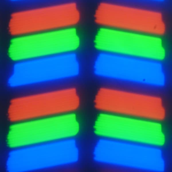 В данном смартфоне используется матрица типа IPS. Микрофотографии демонстрируют типичную для IPS структуру субпикселей: