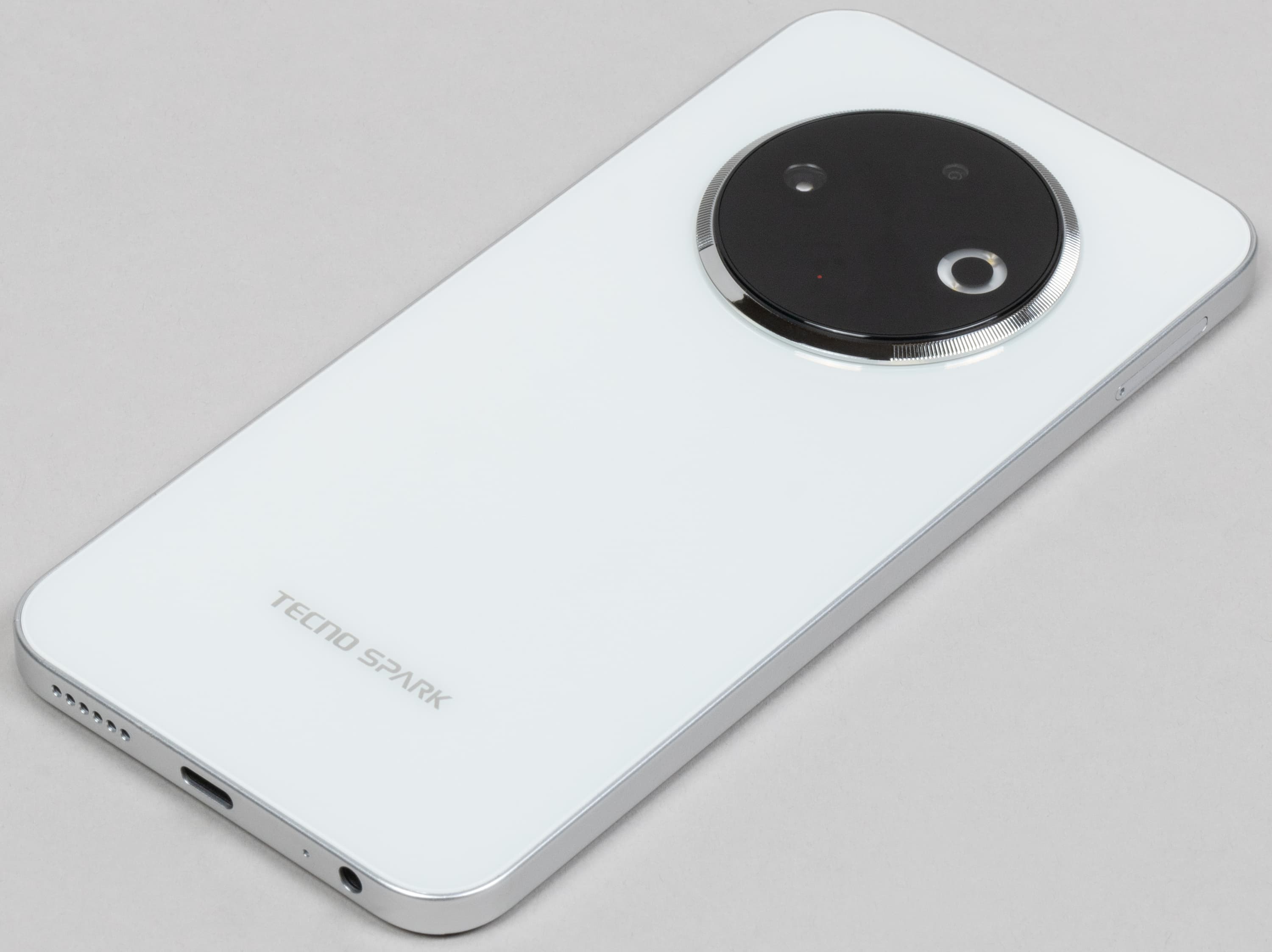 Смартфон Tecno Spark 30C оснащен лишь одной снимающей тыльной камерой. Также на выступающем блоке сзади размещены вспомогательный датчик и светодиодная вспышка.