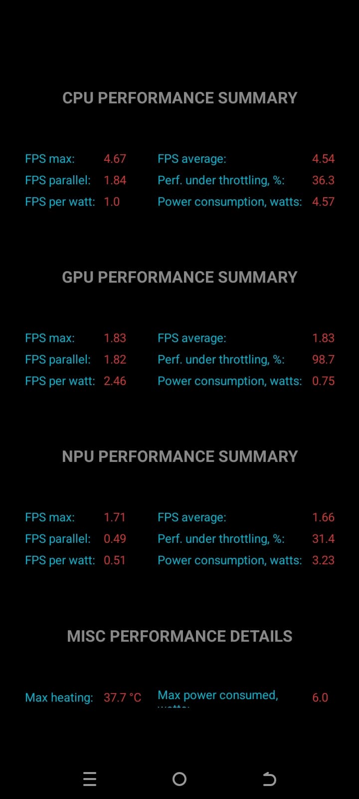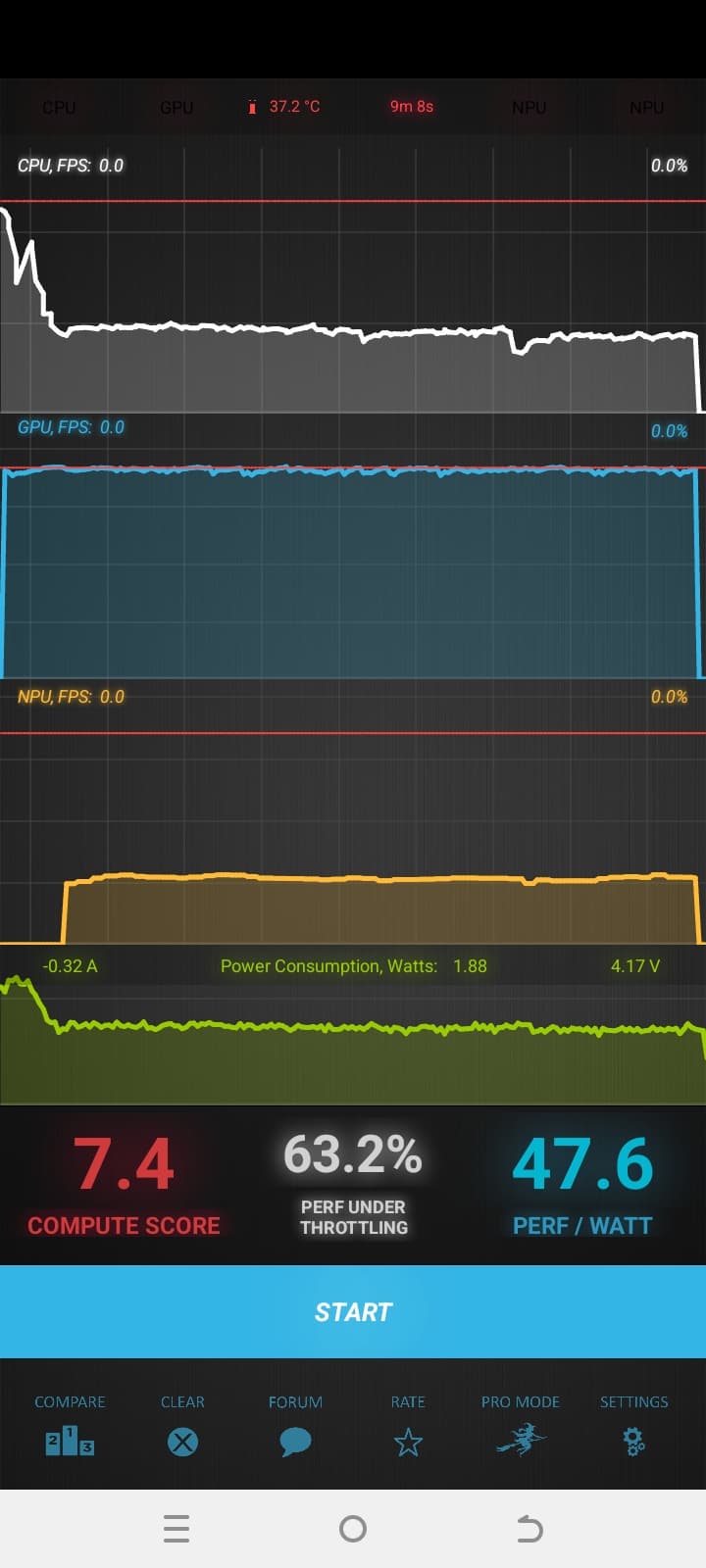 Тест на снижение производительности при нагреве мы проводим с помощью программы Burnout Benchmark, которая позволяет нагружать CPU, GPU и NPU: