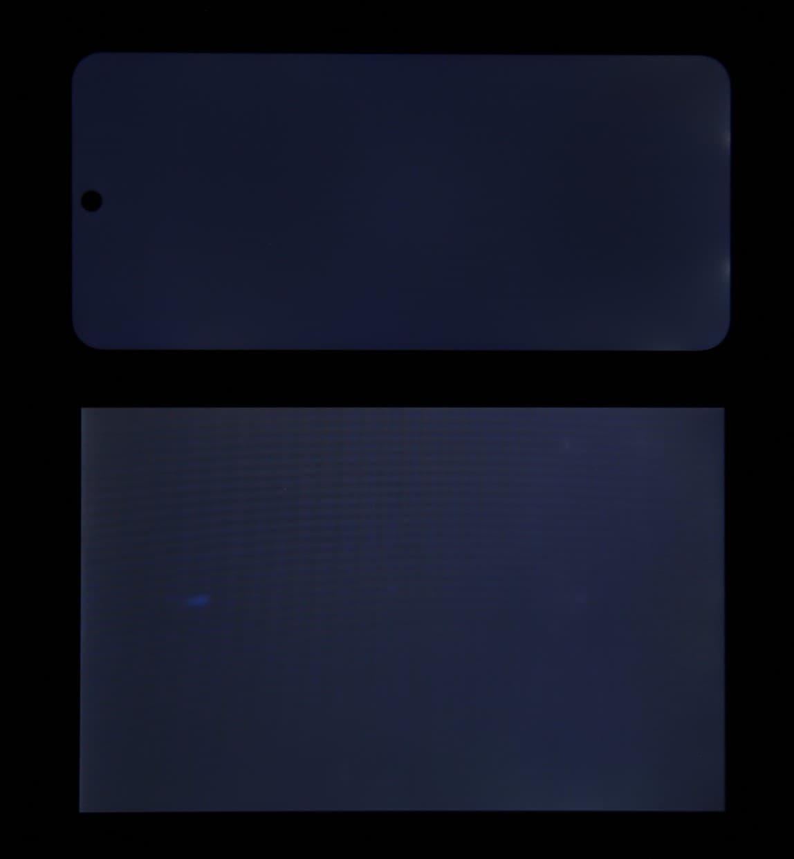 При перпендикулярном взгляде равномерность черного поля в целом хорошая, но у нижнего края есть пара небольших засветов: