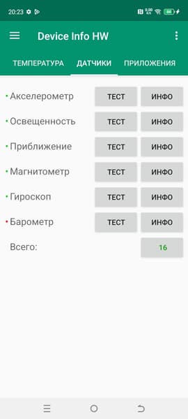- Датчики приближения и освещения, магнитного поля, акселерометр, гироскоп